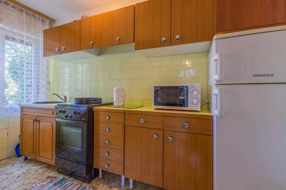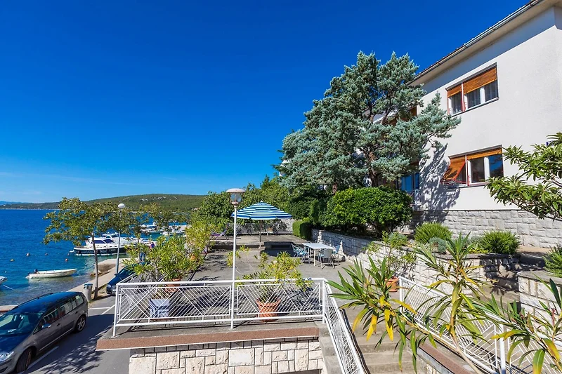 Jadranovo. Die Ferienwohnung befindet sich auf einem Gartengrundstück mit Blumen und Sträuchern. Der Vermieter wohnt ständig im Haus. Schöne Ferienwohnung mit der Lage am Meer ein Traum im kleinem Fischerort Jadranovi in der Nähe von Crikvenica. Diese gemütliche Ferienwohnung befindet sich in der ersten Reihe zum Meer und ist somit nur ein paar Meter von einem kleinen Kieselstrand entfernt ist. Die Zufahrt erfolgt über eine Nebenstrasse (asphaltiert). Parkplatz auf einem Parkplatz im Ort. In der Umgebung des Hauses stehen öffentliche Parkplätze zur Verfügung, welche gebührenpflichtig sind. Eine Tageskarte für den Parkplatz kostet 40,00 Kuna, umgerechnet ca 5,70€. Die Tageskarte muss vorbestellt werden und es müssen die Nummernschilder des Fahrzeuges spätestens 1 Woche vor Anreise angegeben werden.