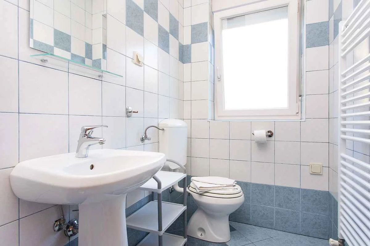 Baška. Die Ferienwohnung befindet sich auf einem Gartengrundstück. Der Vermieter wohnt ständig im Haus. Die Zufahrt erfolgt über eine Nebenstrasse (asphaltiert). Parkplatz (für 1 Pkw) auf dem Grundstück.