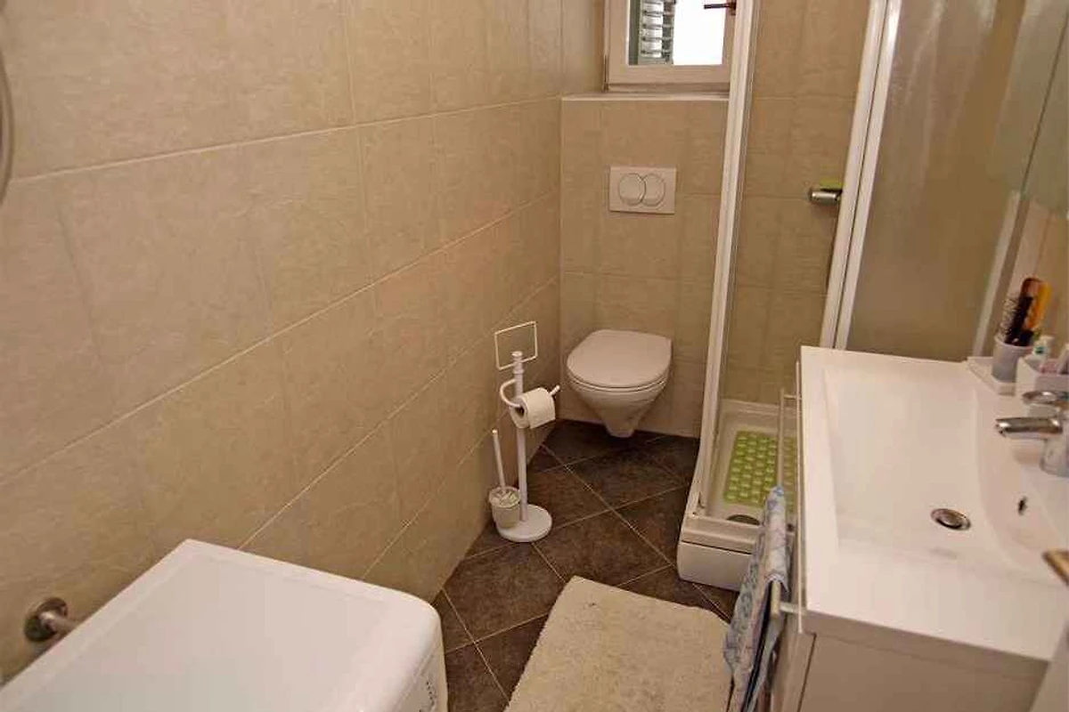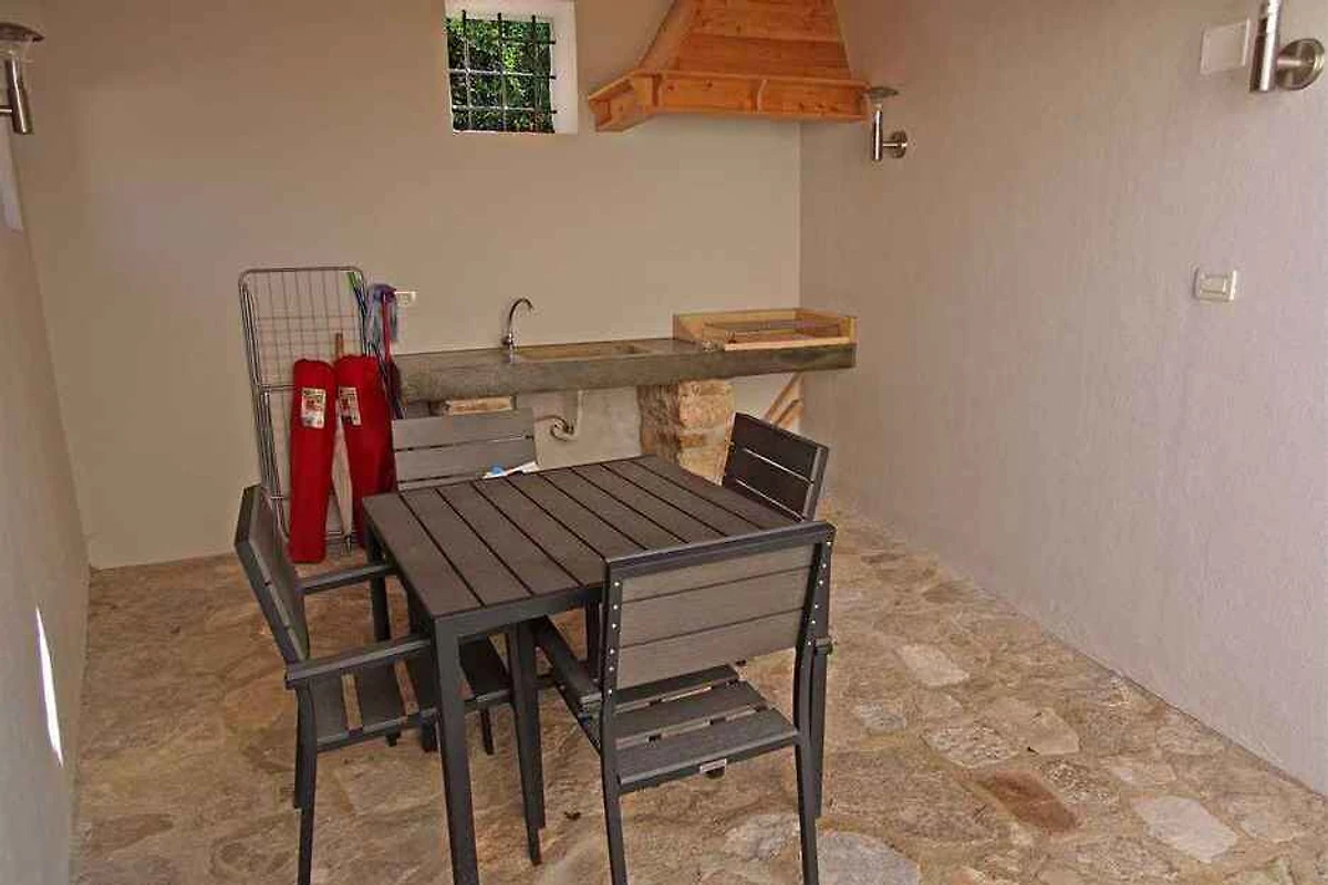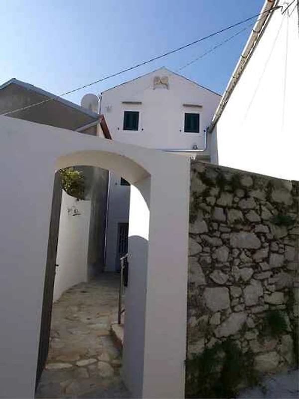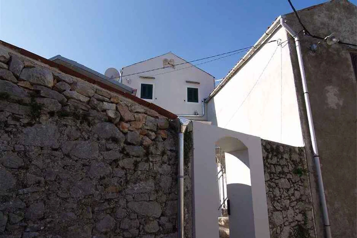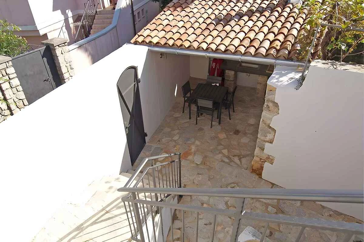 Veli Lošinj. Die Ferienwohnung befindet sich auf einem geschlossenen Grundstück, von einer Mauer begrenzt. Der Vermieter wohnt nicht im Haus oder auf dem Grundstück. Die Zufahrt erfolgt über eine Nebenstrasse. Parkplatz auf einem Parkplatz im Ort. gegen Gebühr.