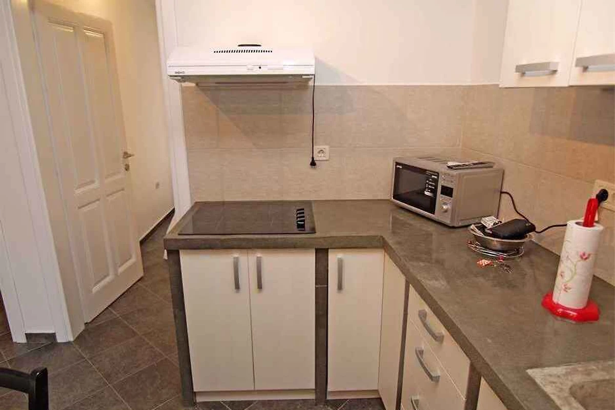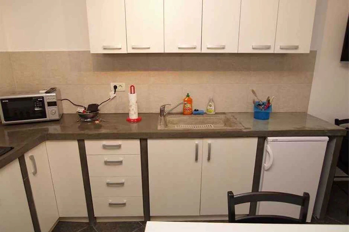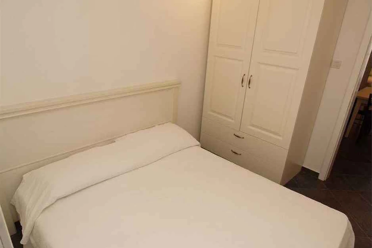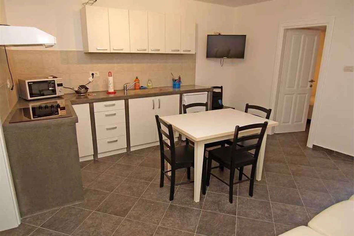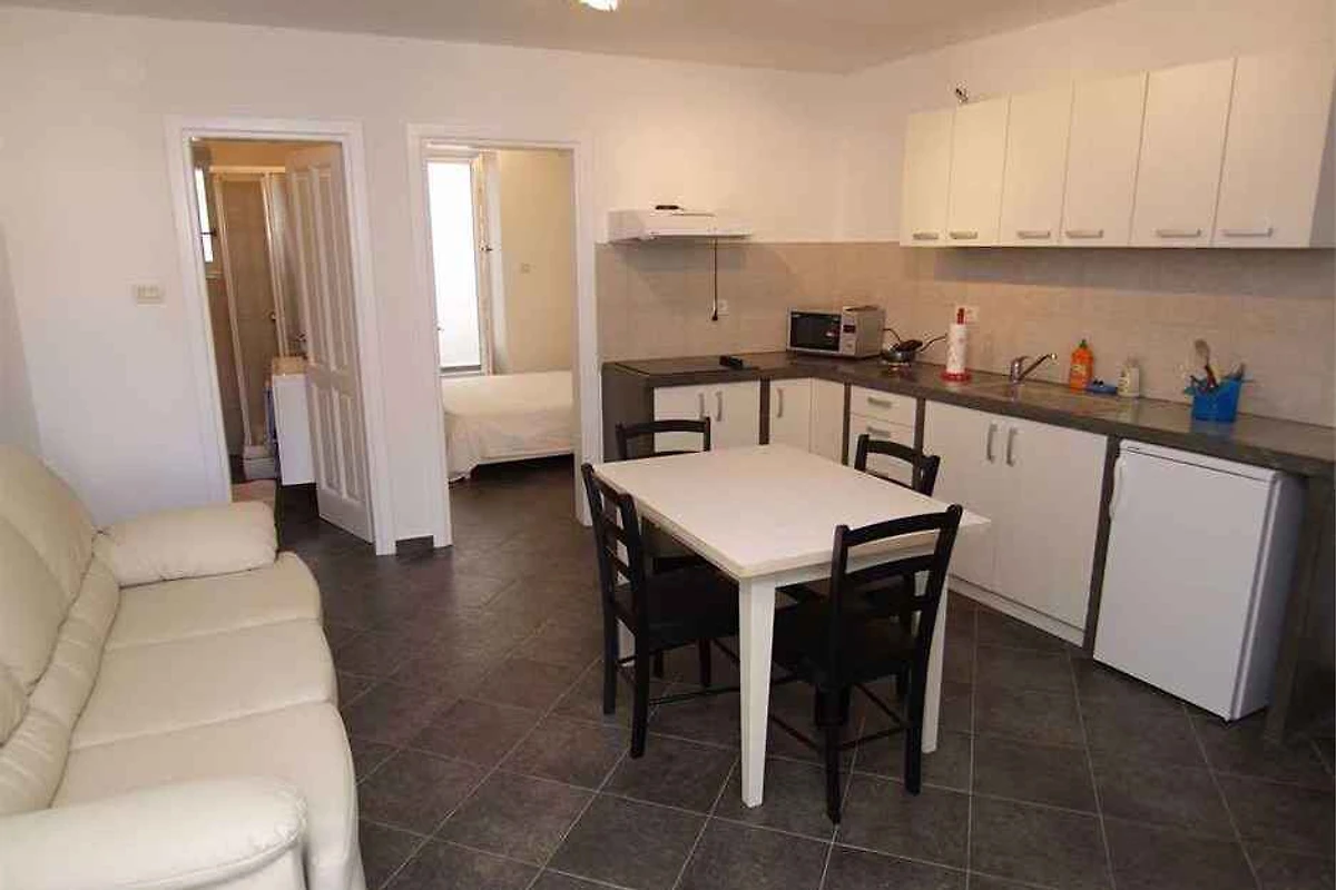 Veli Lošinj. Die Ferienwohnung befindet sich auf einem geschlossenen Grundstück, von einer Mauer begrenzt. Der Vermieter wohnt nicht im Haus oder auf dem Grundstück. Die Zufahrt erfolgt über eine Nebenstrasse. Parkplatz auf einem Parkplatz im Ort. gegen Gebühr.