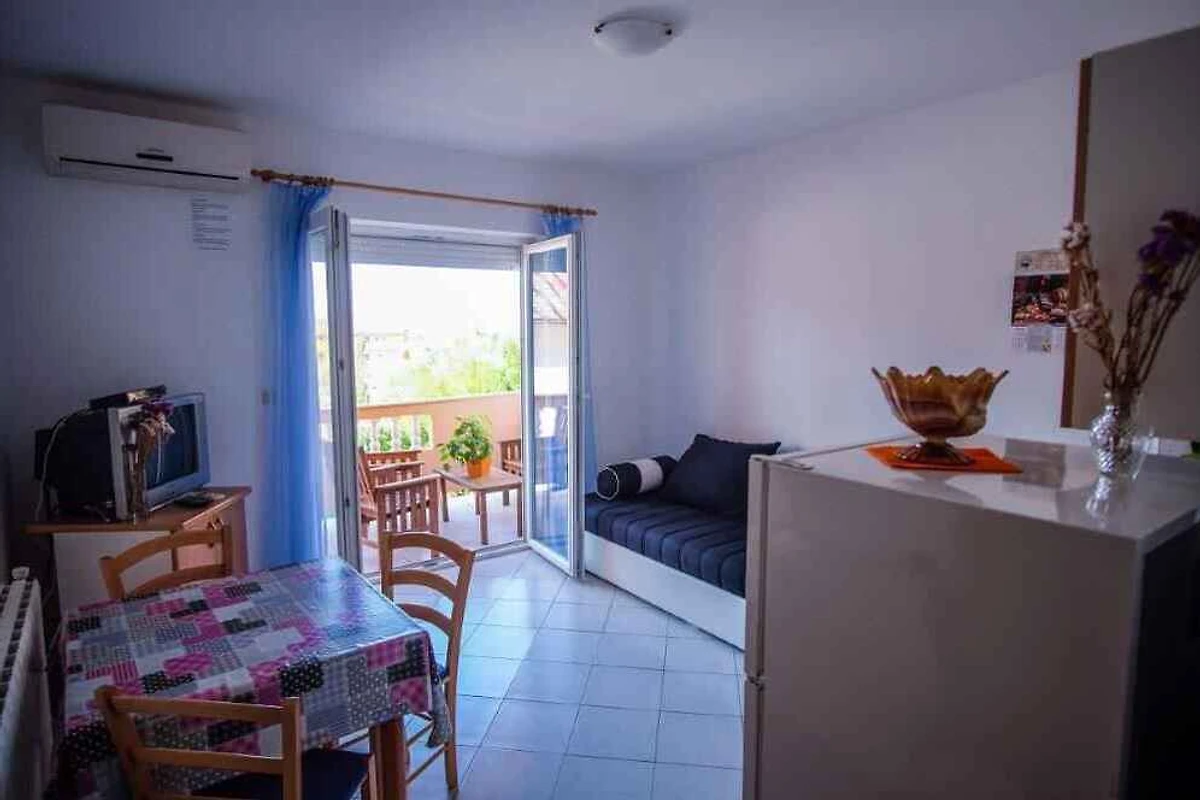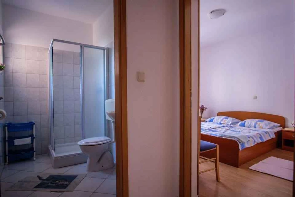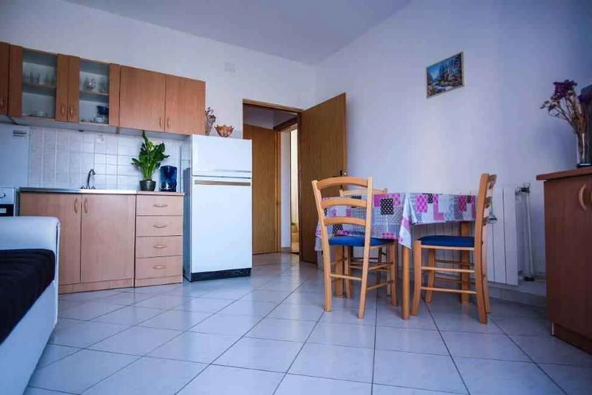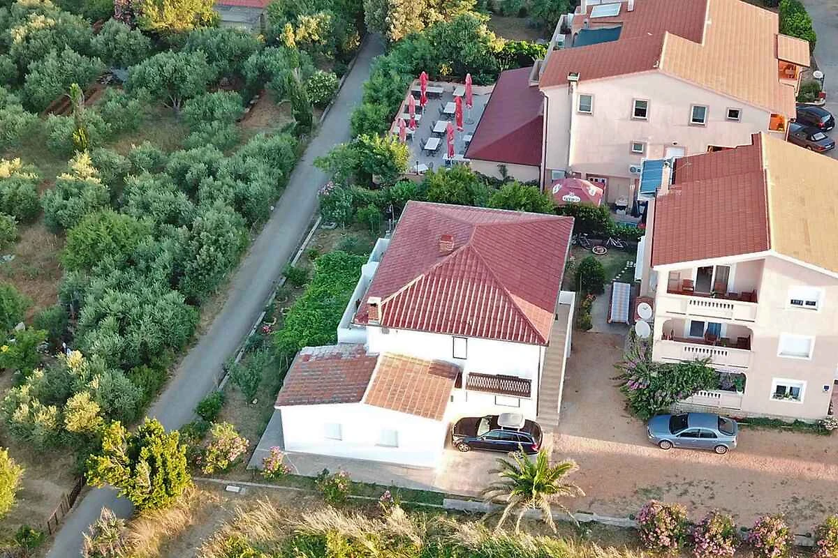 Barbat, 18 mNN. Die Ferienwohnung befindet sich auf einem offenen Gartengrundstück mit Blumen. Der Vermieter wohnt ständig im Haus, nutzt jedoch einen separaten Eingang. FerienWohnungen KVA RAB 111, KVA RAB 112, KVA RAB 113 und KVA RAB 114 (jeweils für 4 Personen) befinden sich im selben Haus. Die Zufahrt erfolgt über eine Nebenstrasse (asphaltiert). Parkplatz (für 9 Pkws) auf dem Grundstück.