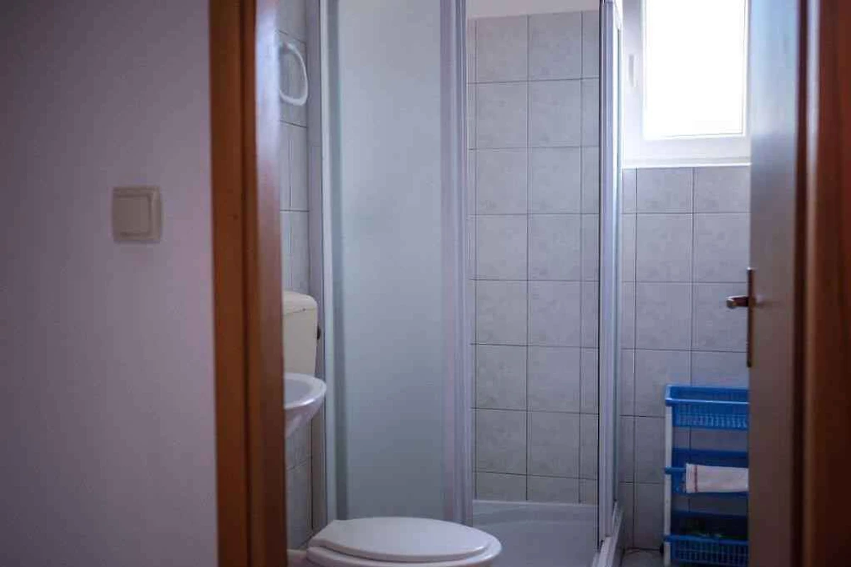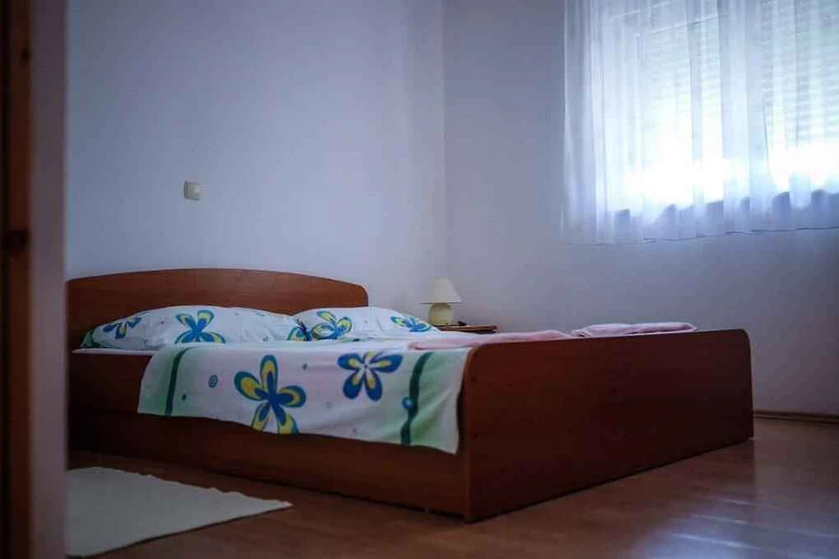 Barbat, 20 mNN. Die Ferienwohnung befindet sich auf einem offenen Gartengrundstück mit Blumen. Der Vermieter wohnt ständig im Haus, nutzt jedoch einen separaten Eingang. Ferienwohnungen KVA RAB 108 (9 Personen) und KVA RAB 110 (5 Personen) befinden sich auf dem selben Grundstück. Ferienwohnungen KVA RAB 111 (5 Personen), KVA RAB 112 und 114 (jeweils für 4 Personen) befinden sich im selben Haus. Die Zufahrt erfolgt über eine Nebenstrasse (asphaltiert). Parkplatz (für 9 Pkws) auf dem Grundstück.