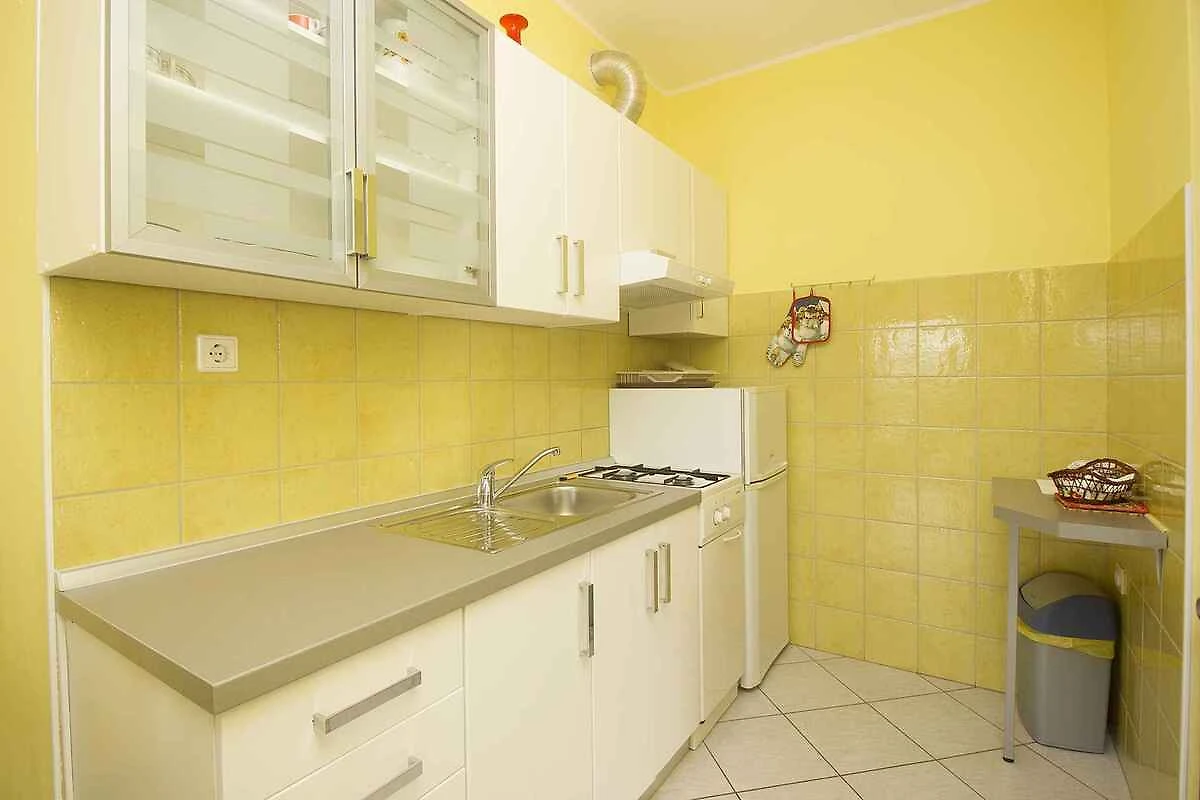 . 2 Schlafzimmer jeweils mit 1 Doppelbett. Kochecke in der Wohnküche mit Gasherd, Kühlschrank (Eisfach), Kaffeemaschine und Zugang zum Balkon. Bad mit Dusche, WC und Bidet.