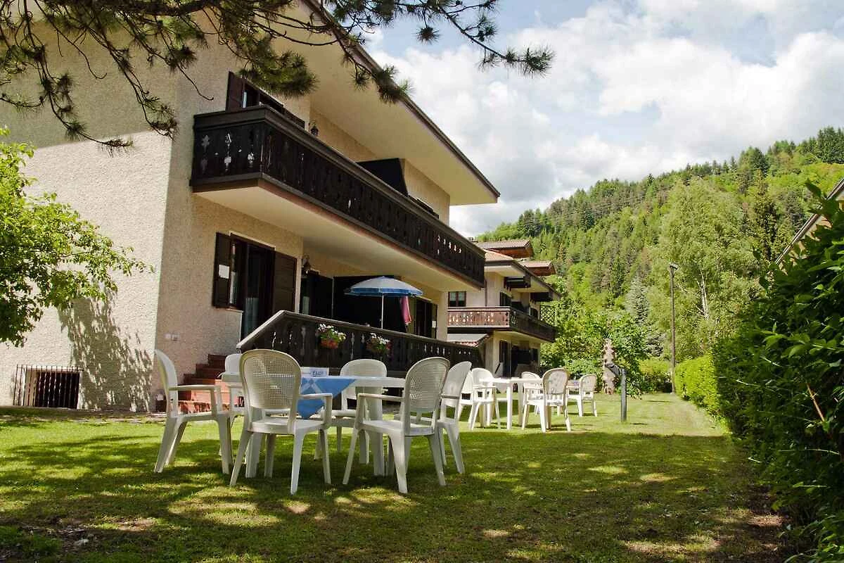 Pieve di Ledro, 650 mNN. Die Ferienwohnung befindet sich in einer Residenz, auf einem geschlossenen Gartengrundstück mit Wiese, von einem Zaun und einer Hecke begrenzt. Die Zufahrt erfolgt direkt von der Hauptstrasse (asphaltiert). Parkplatz (für 4 Pkws) auf dem Grundstück.