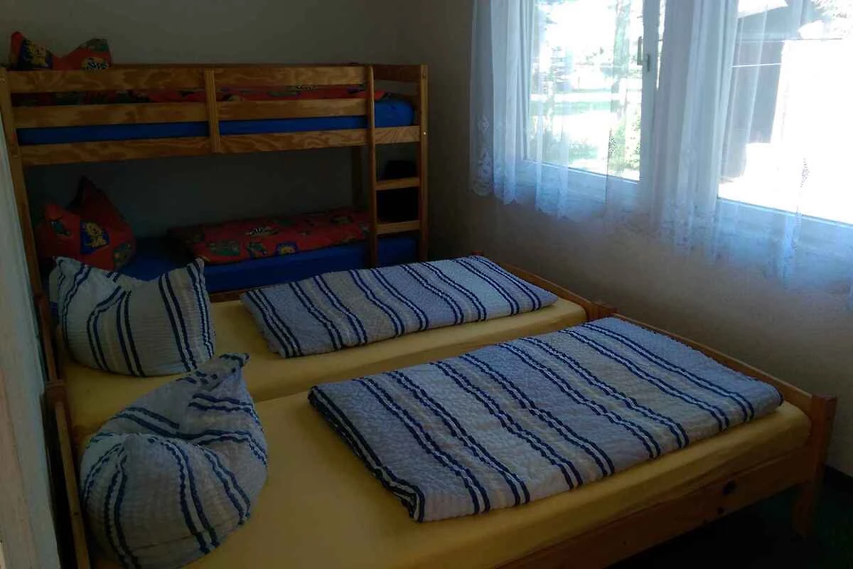 Bungalow, 1 Etage, 3 Zimmer (davon 2 Schlafzimmer), 60 qm, insgesamt 6 Betten (davon 1 Zusatzbett).
