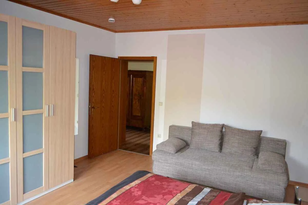 Dahn. Der Vermieter wohnt ständig im Haus, nutzt jedoch einen separaten Eingang. nicht klassifiziert, jedoch 4-Sterne Komfort-Standard. 120 qm. Ausblick vom Haus auf Burgruine Altdahn. Die Zufahrt erfolgt direkt von der Hauptstrasse (asphaltiert). Parkplatz auf dem Grundstück und der Strasse vor dem Haus. 1 eigener Parkplatz in der Garageneinfahrt. Weitere Fahrzeuge auf der Strasse.
