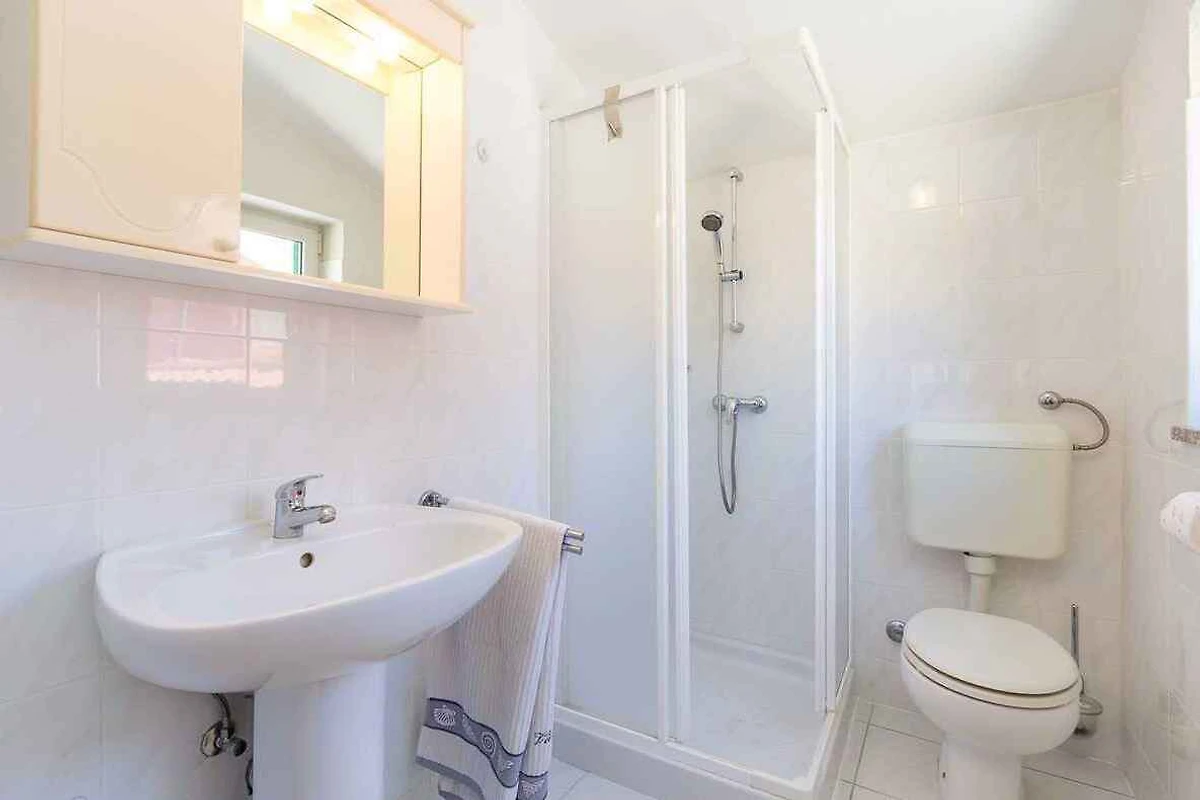 Medulin. Die Ferienwohnung befindet sich auf einem 2700 qm grossen, geschlossenen Gartengrundstück mit Blumen, Sträuchern und Bäumen. Der Vermieter wohnt ständig im Haus. Die Zufahrt erfolgt über eine Nebenstrasse. Parkplatz (für 1 Pkw) auf dem Grundstück.