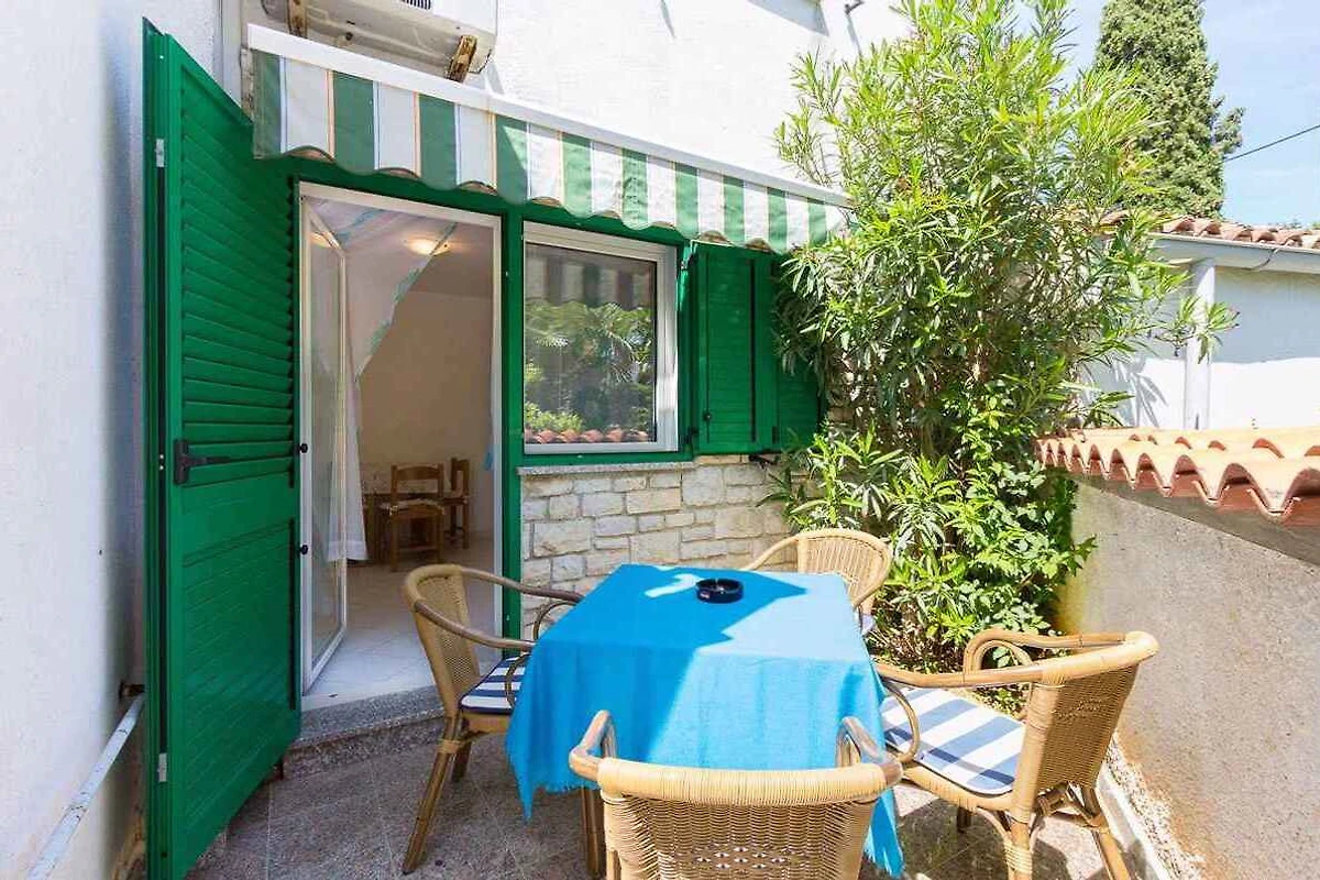 Medulin. Die Ferienwohnung befindet sich auf einem 2700 qm grossen, geschlossenen Gartengrundstück mit Blumen, Sträuchern und Bäumen. Der Vermieter wohnt ständig im Haus. Die Zufahrt erfolgt über eine Nebenstrasse. Parkplatz (für 1 Pkw) auf dem Grundstück.