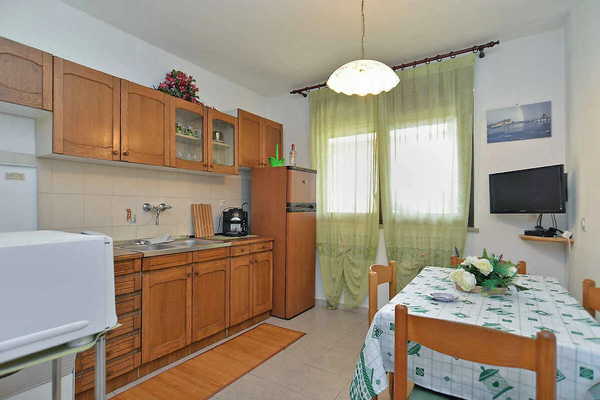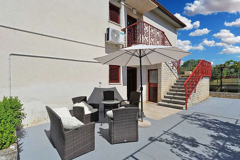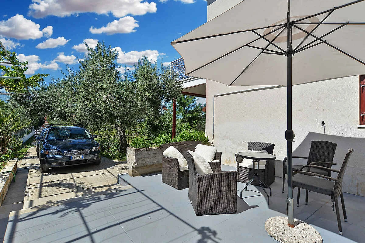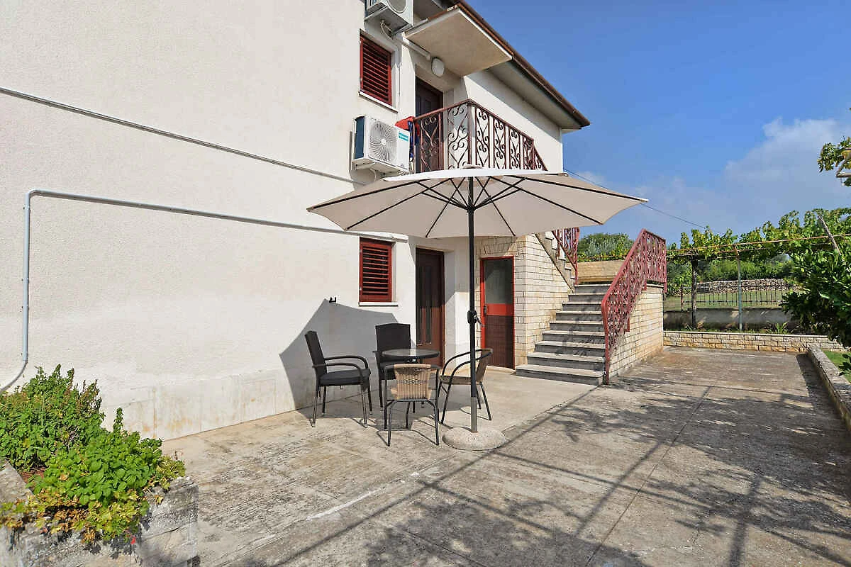 Pula. Die Ferienwohnung befindet sich auf einem Gartengrundstück. Der Vermieter wohnt ständig im Haus, nutzt jedoch einen separaten Eingang. Parkplatz (für 1 Pkw) auf dem Grundstück.