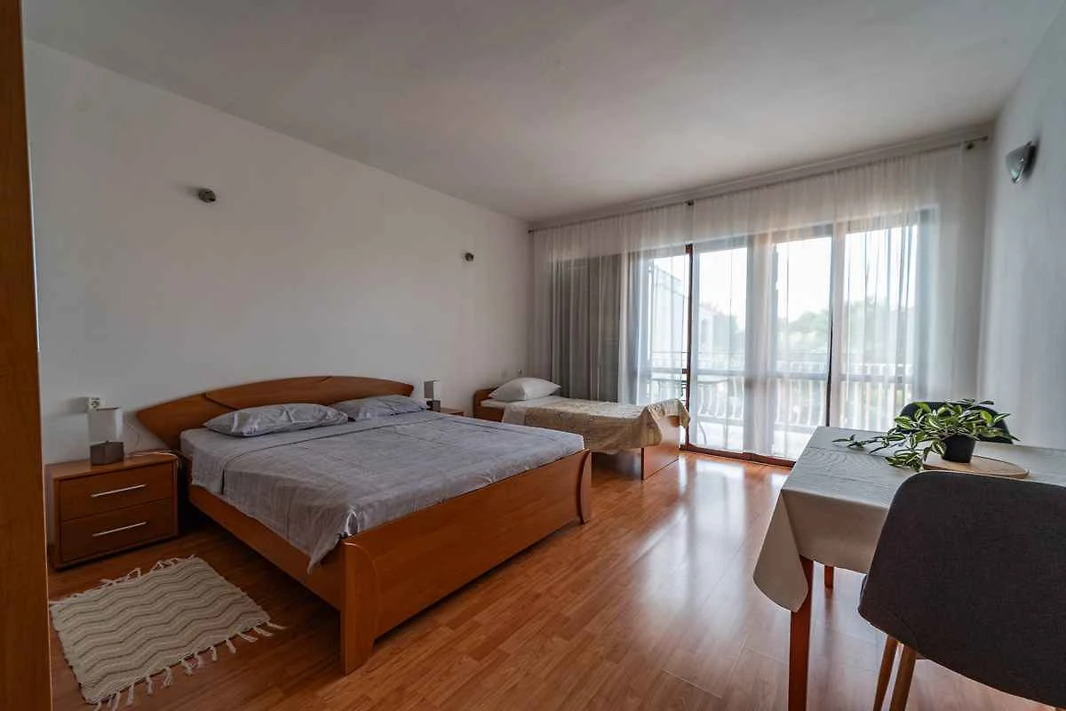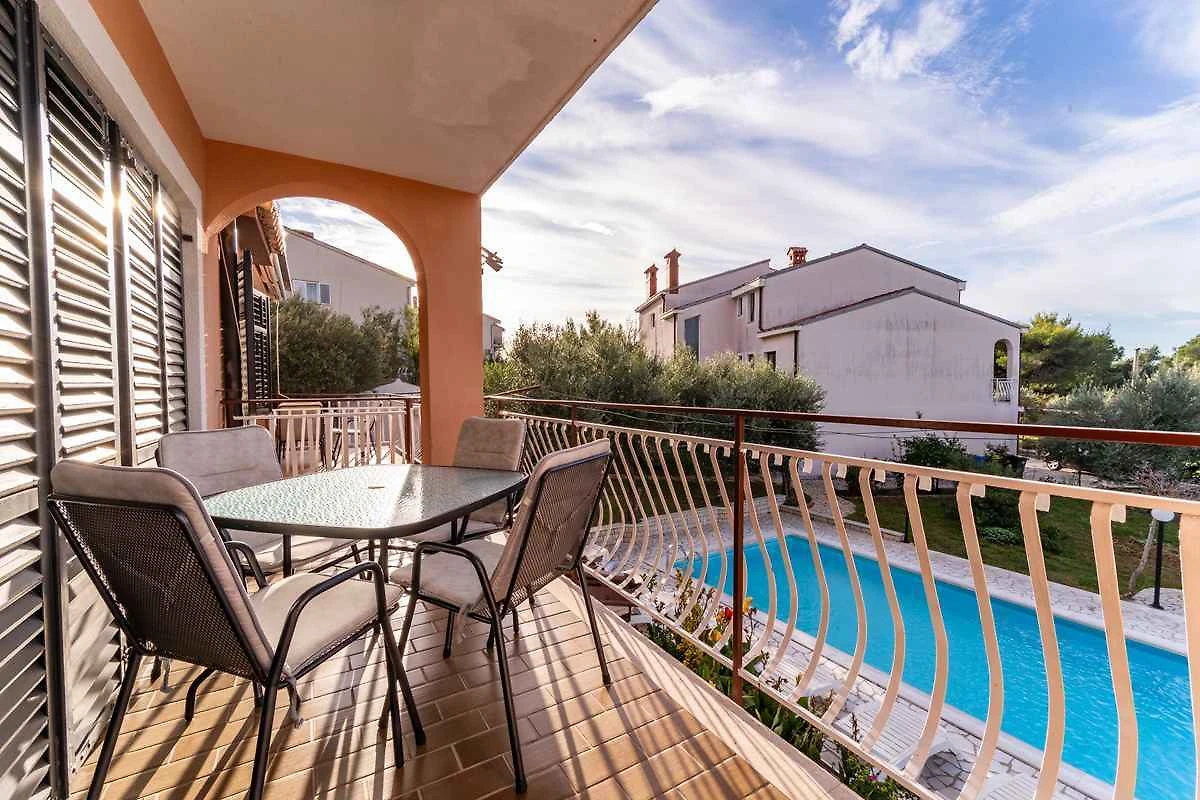 Pula. Die Ferienwohnung befindet sich in einer Ferienanlage, auf einem 1200 qm grossen, geschlossenen Grundstück. Die Zufahrt erfolgt über eine Nebenstrasse. Parkplatz (für 1 Pkw) auf dem Grundstück.