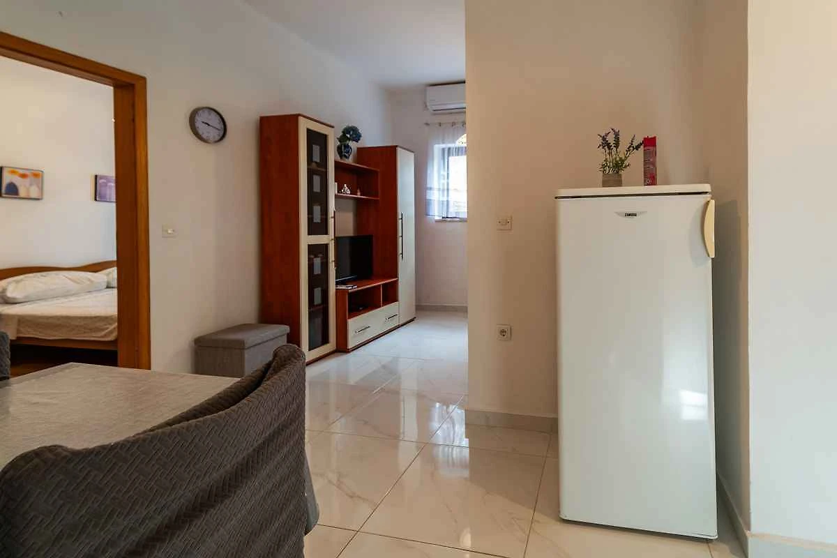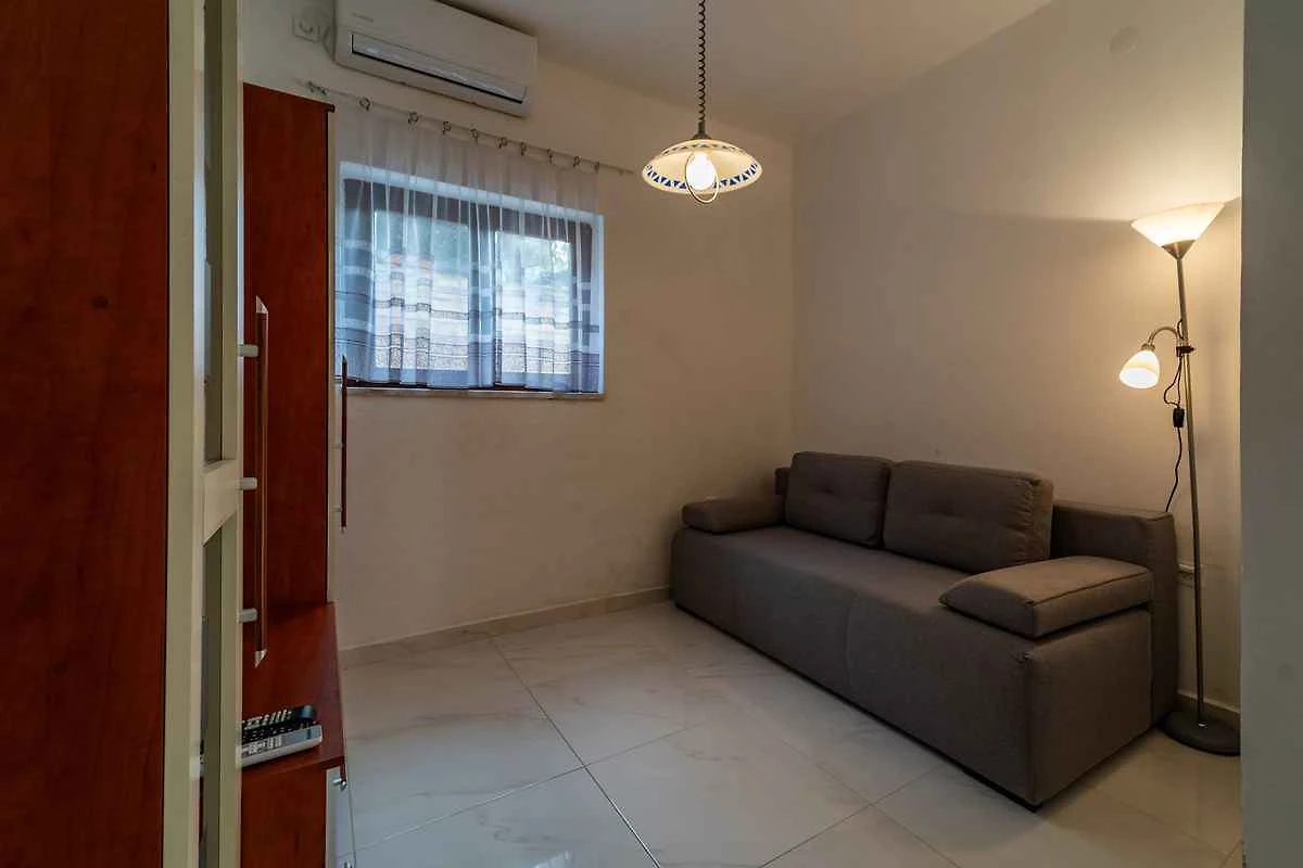 Pula. Die Ferienwohnung befindet sich auf einem 1200 qm grossen, geschlossenen Grundstück. Der Vermieter wohnt ständig im Haus, nutzt jedoch einen separaten Eingang. Parkplatz (für 1 Pkw) auf dem Grundstück.