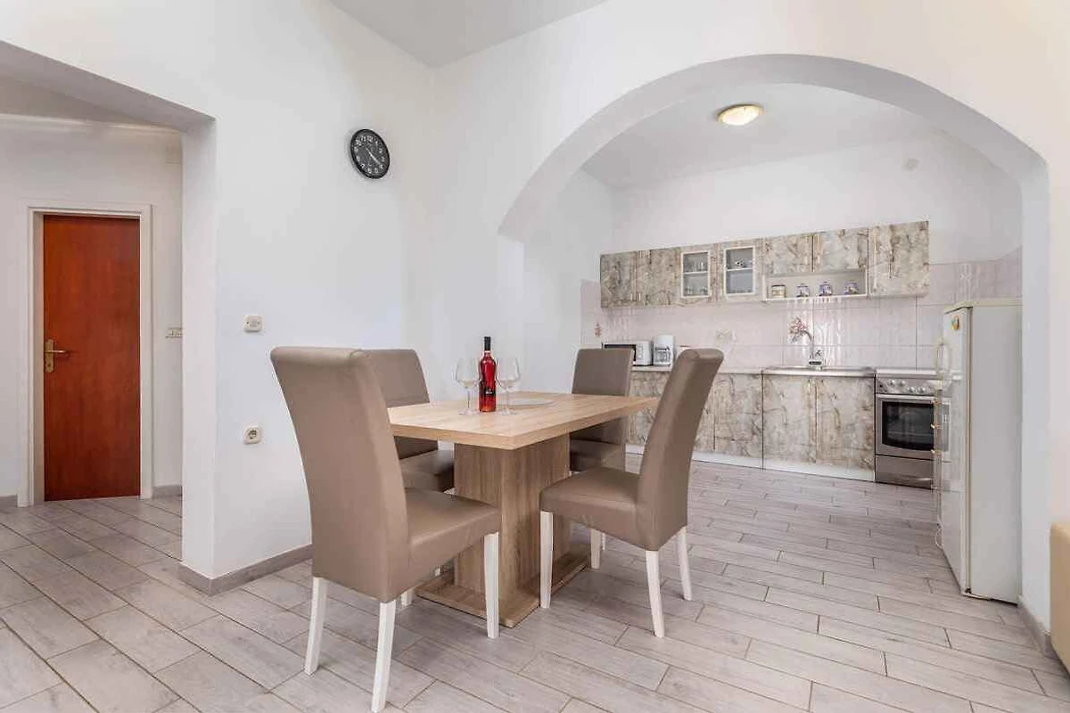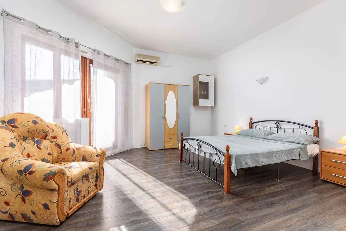 Pula, Ortsteil Šikići. Die Ferienwohnung befindet sich auf einem 600 qm grossen, geschlossenen Grundstück. Der Vermieter wohnt ständig im Haus, nutzt jedoch einen separaten Eingang. Unweit des Kerns der berühmten Pula, die voller weltgeschützter Kulturdenkmäler ist, befindet sich ein angenehmes Ferienhaus. Das Wohnung befindet sich in einem freistehenden, eingezäunten Haus, abseits vom alltäglichen Lärm der Stadt. Die Zufahrt erfolgt über eine Nebenstrasse (asphaltiert). Parkplatz (für 1 Pkw) auf dem Grundstück.