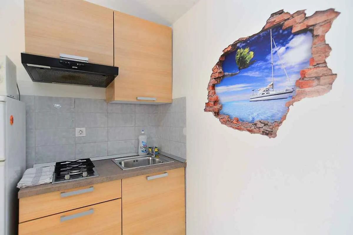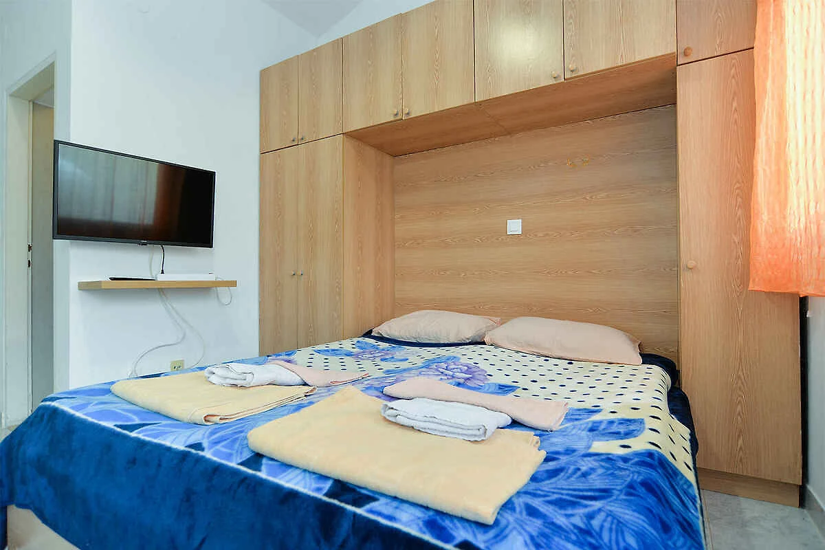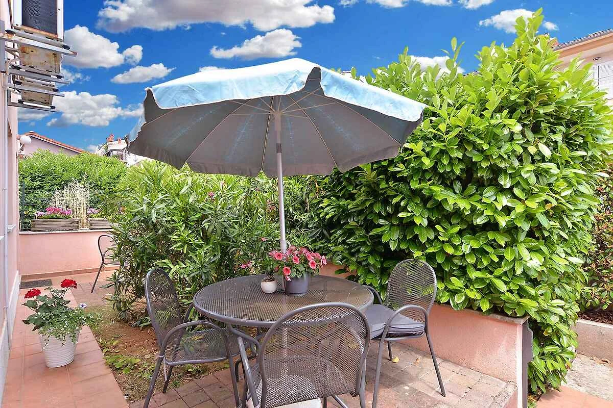 Pula. Die Ferienwohnung befindet sich auf einem Gartengrundstück. Der Vermieter wohnt ständig im Haus, nutzt jedoch einen separaten Eingang. Parkplatz (für 1 Pkw) auf dem Grundstück.
