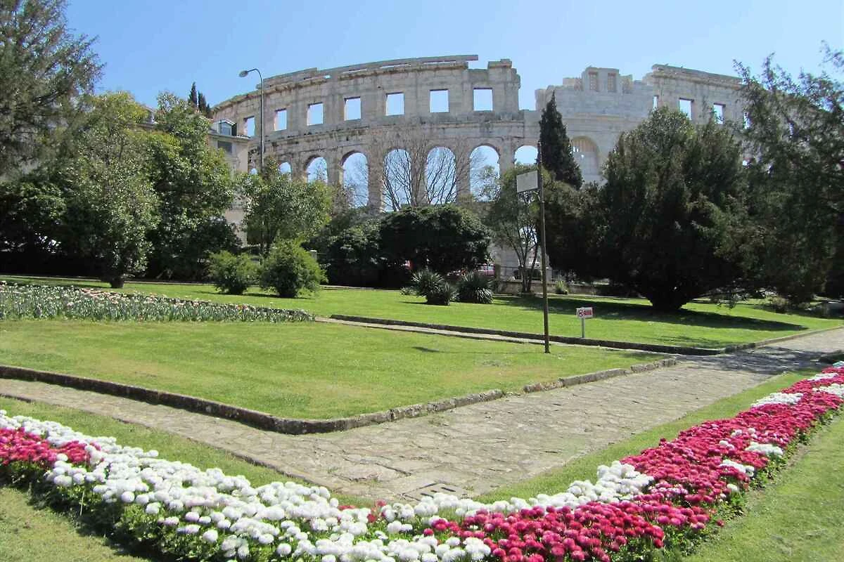 Einkauf 100 m, Restaurant 300 m, Ortszentrum 300 m. Pula: Diskothek, Apotheke, Bank jeweils 5 km. Flughafen 9 km. Im Sommer: Adria 800 m in Stinjan (Strand 800 m in Stinjan mit Kies und Felsen). Bootsanleger in Stinjan 800 m.