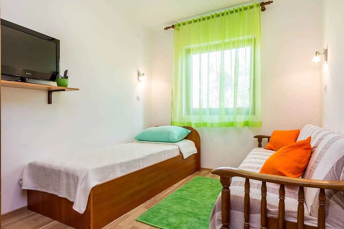Štinjan. Das Ferienhaus befindet sich auf einem Gartengrundstück mit Wiese und Bäumen. Der Vermieter wohnt ständig im Haus, nutzt jedoch einen separaten Eingang. Das Interieur ist gemütlich, in der Einrichtung überwiegt Holz, die Böden im Wohnbereich und Badezimmer sind gefliest und in den Schlafzimmern mit Laminat belegt. Im Hof befindet sich ein Kamin und besonders eingerichtet ist auch die Terrasse für Mahlzeiten an der frischen Luft. Die Zufahrt erfolgt über eine Nebenstrasse (asphaltiert). Parkplatz (für 1 Pkw) auf dem Grundstück.