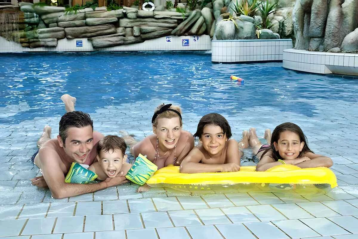 Alle Pools stehen Ihnen zur gemeinsamen Nutzung zur Verfügung. Aussenpool. Kinderpool. Innenpool. Das Dorf bietet zwei separate Thermalparks, um das ganze Jahr über Spass zu garantieren. Die Sommer-Thermalriviera erstreckt sich über eine Fläche von 10.000 m² Thermalwasser und bietet eine Vielzahl von Pools in unterschiedlichen Formen und Grössen, die sowohl für Erwachsene als auch für Kinder geeignet sind. Zu den Hauptattraktionen gehören Wasserrutschen, eine Pirateninsel, ein Strömungskanal, Wellenbecken und Whirlpools, perfekt zum Entspannen in der Sonne. Die Winter-Thermalriviera, mit ihren 2.300 m² beheiztem Thermalwasser, ist ideal für ganzjährige Wellnessaufenthalte und bietet Innen- und Aussenpools, Wasserrutschen und weitere Attraktionen für Gross und Klein.