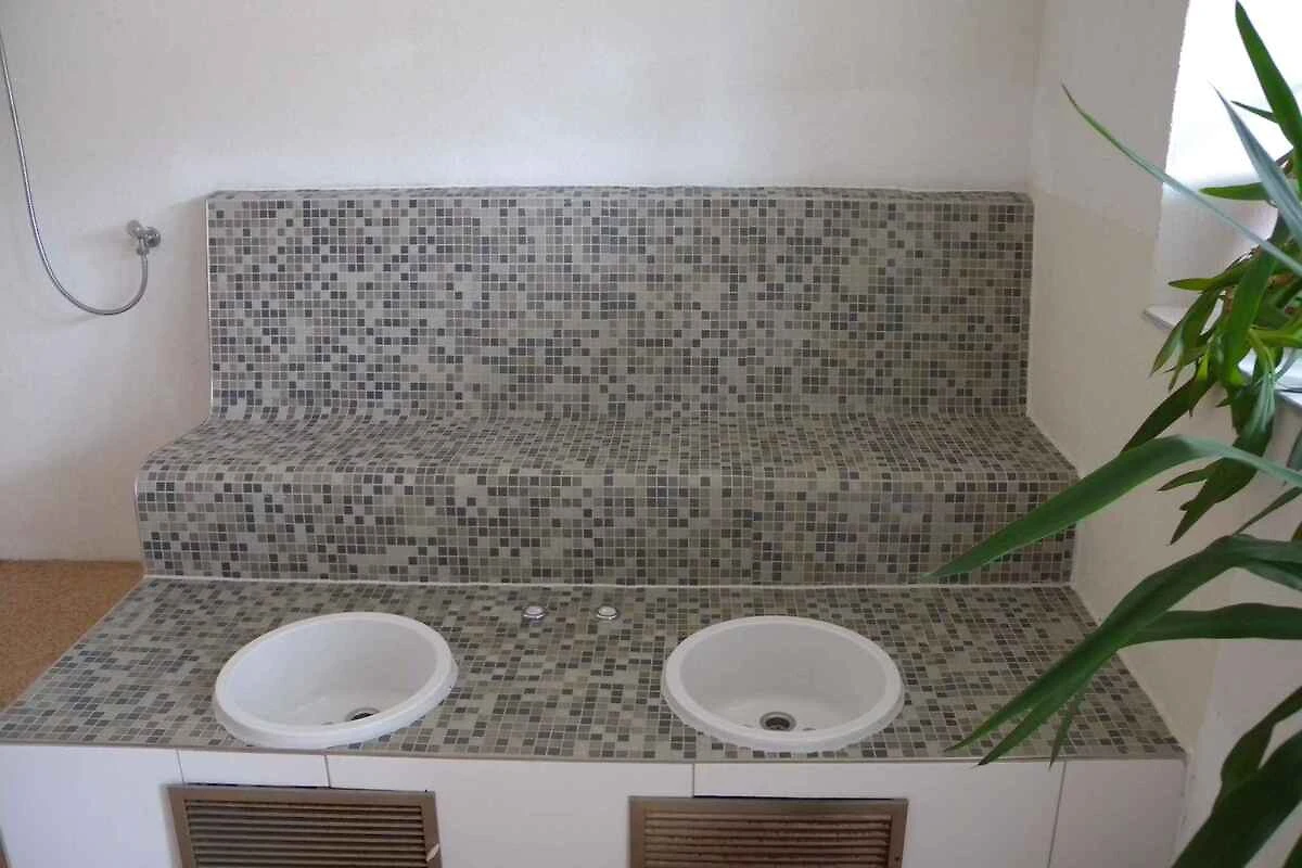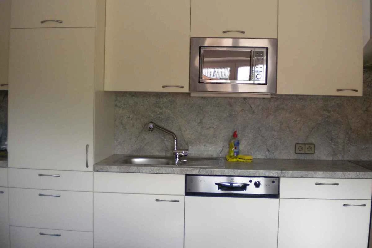 und ist rollstuhlgeeignet. Die FerienWohnung erreicht man über einen Fahrstuhl oder eine Treppe zur Wohnungstür. Wohnküche mit TV und Zugang zum Balkon (überdacht, Gartenmöbel). Schlafzimmer mit 1 Etagenbett. 2 Schlafzimmer jeweils mit 1 Doppelbett und 1 Einzelbett. Schlafzimmer mit 1 Doppelbett. Kochecke in der Wohnküche mit Essecke, Elektroherd (Cerankochfeld, 4 Platten), Backofen, Dunstabzugshaube, Geschirrspüler, Kühlschrank, Mikrowelle und Kaffeemaschine. Bad mit Dusche, 1 Waschbecken, WC, Bidet und Föhn. Separates WC mit WC.