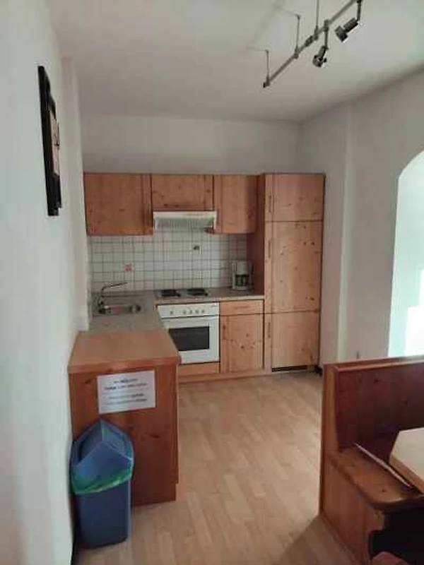und führt über eine Innentreppe direkt in den Flur mit Garderobe und Türen zu allen Räumen. Die Wohnungen liegen im 1. Stock im Einfamilienhaus. Wohnzimmer (Durchgangszimmer) mit TV, Radio und Zugang zum Balkon (Gartenmöbel). Schlafzimmer mit 1 Doppelbett. Schlafzimmer mit 1 Etagenbett und Zugang zum Balkon. Küche mit Essecke, Elektroherd (4 Platten), Backofen, Kühlschrank und Kaffeemaschine. Bad mit Dusche. Separates WC mit WC.
