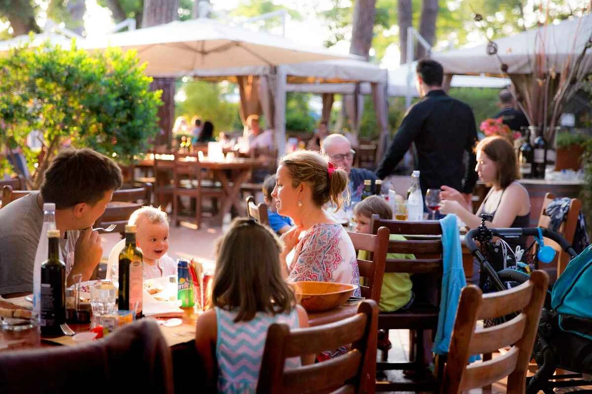 Landeskategorie 4 Sterne, Rezeption, Bankomat, 2 Restaurants, Pizzeria, Bar, Supermarkt, Kiosk und Waschsalon. Liebhaber des guten Essens werden von der Vielfalt der gastronomischen Angebote begeistert sein. Der Campingplatz verfügt über ein Restaurant mit offenem Grill, eine Pizzeria, zwei Cocktailbars, eine Eisdiele, ein Schnellrestaurant und einen Take-away-Service. Für Feinschmecker gibt es auch ein À-la-carte-Restaurant und einen Streetfood-Bereich. Das T-POP-Restaurant, das SiCafé und die Eisdiele werden ab Mitte April geöffnet sein.