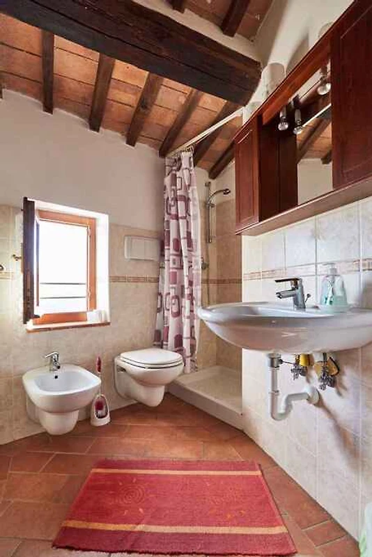 Montieri, Ortsteil Grosseto. Die Ferienwohnung befindet sich in einer Residenz. Grüne, ruhige Lage. Die Zufahrt erfolgt über einen Weg (Geröll oder Schotter). Parkplatz auf der Strasse vor dem Haus.