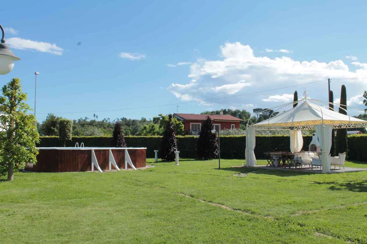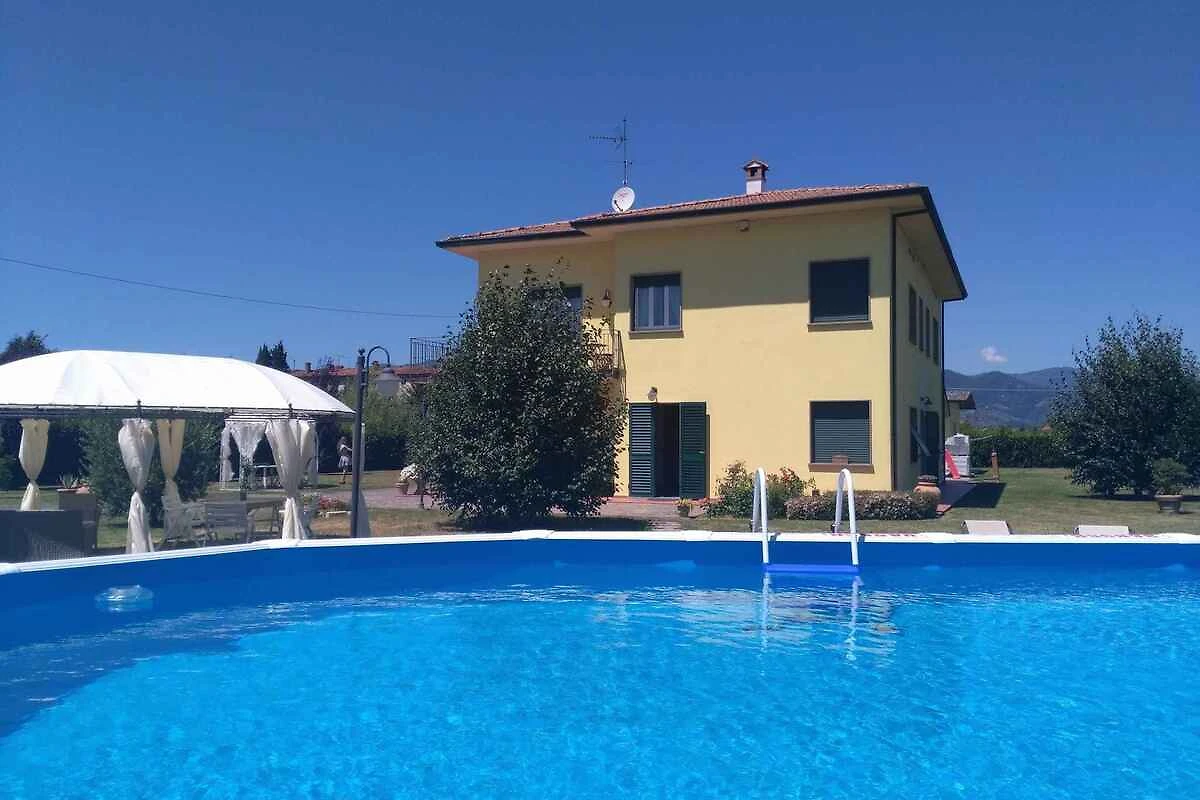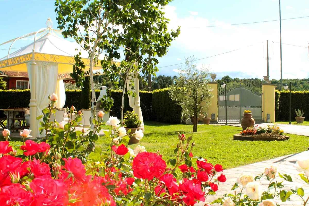Montecarlo Lucca, Ortsteil Montecarlo Lucca. Die Ferienwohnung befindet sich auf einem 2000 qm grossen, geschlossenen Gartengrundstück mit Wiese, Blumen und Bäumen, von einem Zaun und einer Hecke begrenzt. Der Vermieter wohnt nur zeitweise im Haus, nutzt jedoch einen separaten Eingang. Die Zufahrt erfolgt direkt von der Hauptstrasse. Parkplatz in Carport.