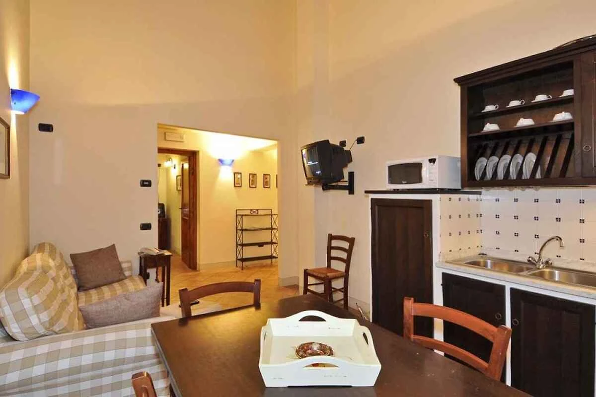 Montecarlo LU. Die Ferienwohnung befindet sich in einer Residenz, auf einem offenen Gartengrundstück mit Blumen und Bäumen. Das Landgut La Torre befindet sich in herrlicher Lage in der Nähe der Ortschaft Montecarlo, nur 15 km von Lucca und Montecatini Terme, 30 km von Pisa und der Küste der Versilia, 60 km von Florenz entfernt. Der Gebäudekomplex des Betriebes wurde nach modernsten baulichen Gesichtpunkten unter Beibehaltung der alten Faszination dieser kleinen Ortschaft vollständig renoviert.