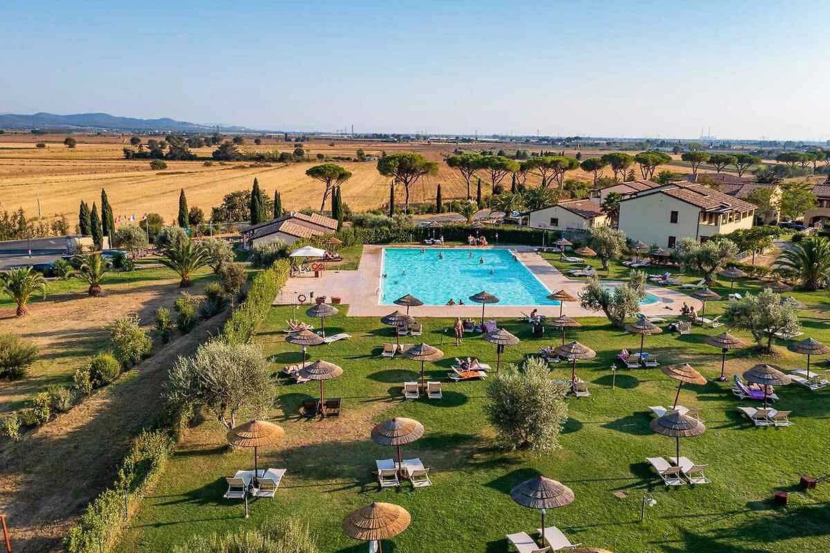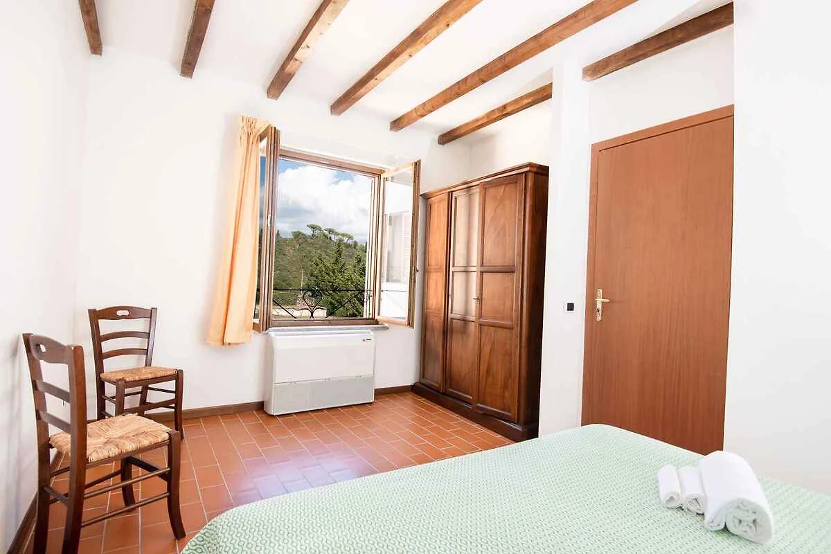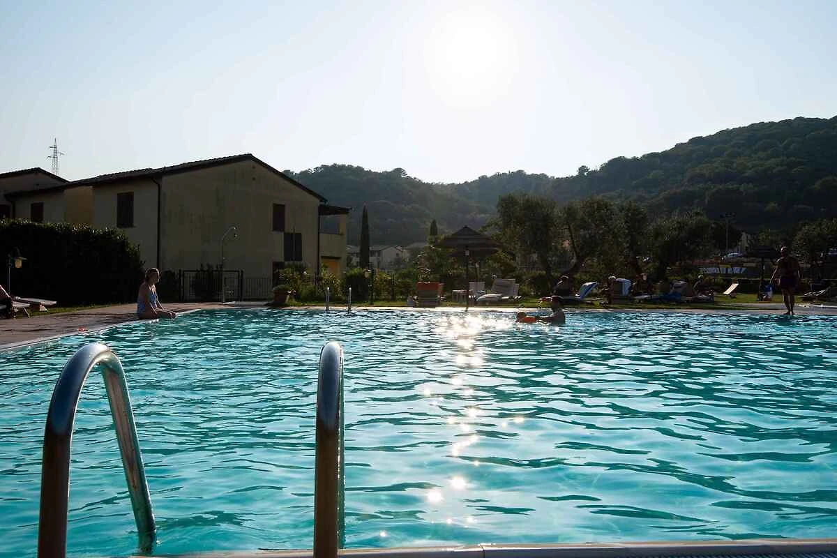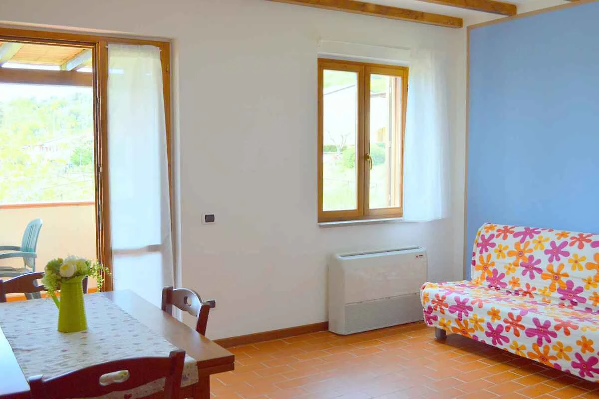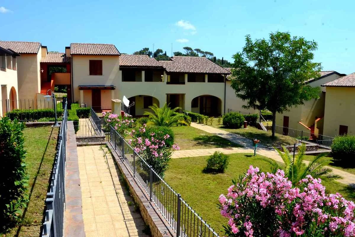 Suvereto. Die Ferienwohnung befindet sich in einer Residenz, auf einem geschlossenen Grundstück mit Wiese, Blumen und Sträuchern. Die Residenz liegt am Fusse eines Hügels mit Blick auf die Ebene von Cornia. Die Wohnung befindet sich im Erdgeschoss. Die Zufahrt erfolgt direkt von der Hauptstrasse (asphaltiert). Parkplatz auf dem Grundstück.