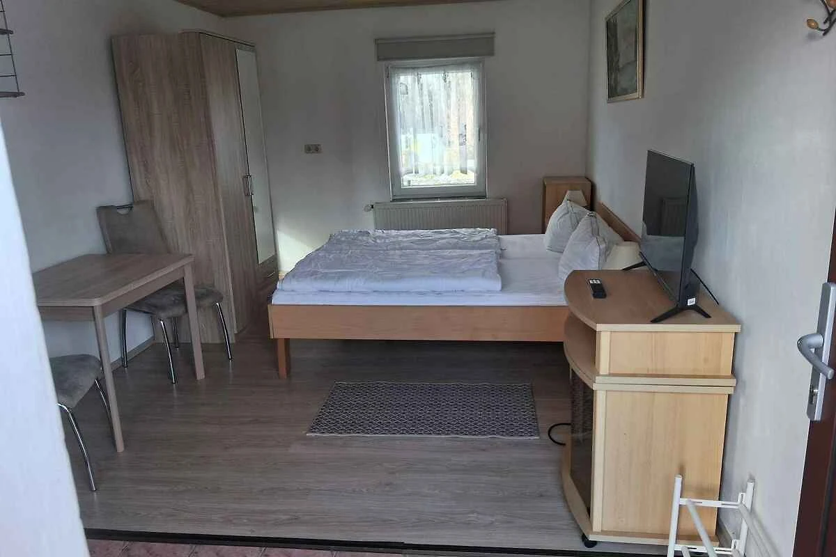 Der Eingang in Ihr Studio befindet sich im Erdgeschoss, ist ebenerdig und führt direkt in das Wohn/Schlafzimmer. Wohn/Schlafzimmer (30 qm) mit 1 Doppelbett, TV, Radio, Essecke (2 Plätze), (Gartenmöbel, 2 Tische, 8 Stühle, 2 Sonnenliegen, Sonnenschirm, gemeinsam mit Wohn/Schlafzimmer) und 1 Doppelbett (1,60 m x 2,00 m). Kochecke im Wohn/Schlafzimmer mit TV, (2 Plätze), Elektroherd (2 Platten), Kühlschrank (Eisfach), Kaffeemaschine und elektrischem Wasserkocher. Bad mit Dusche, 1 Waschbecken, WC und Fenster.