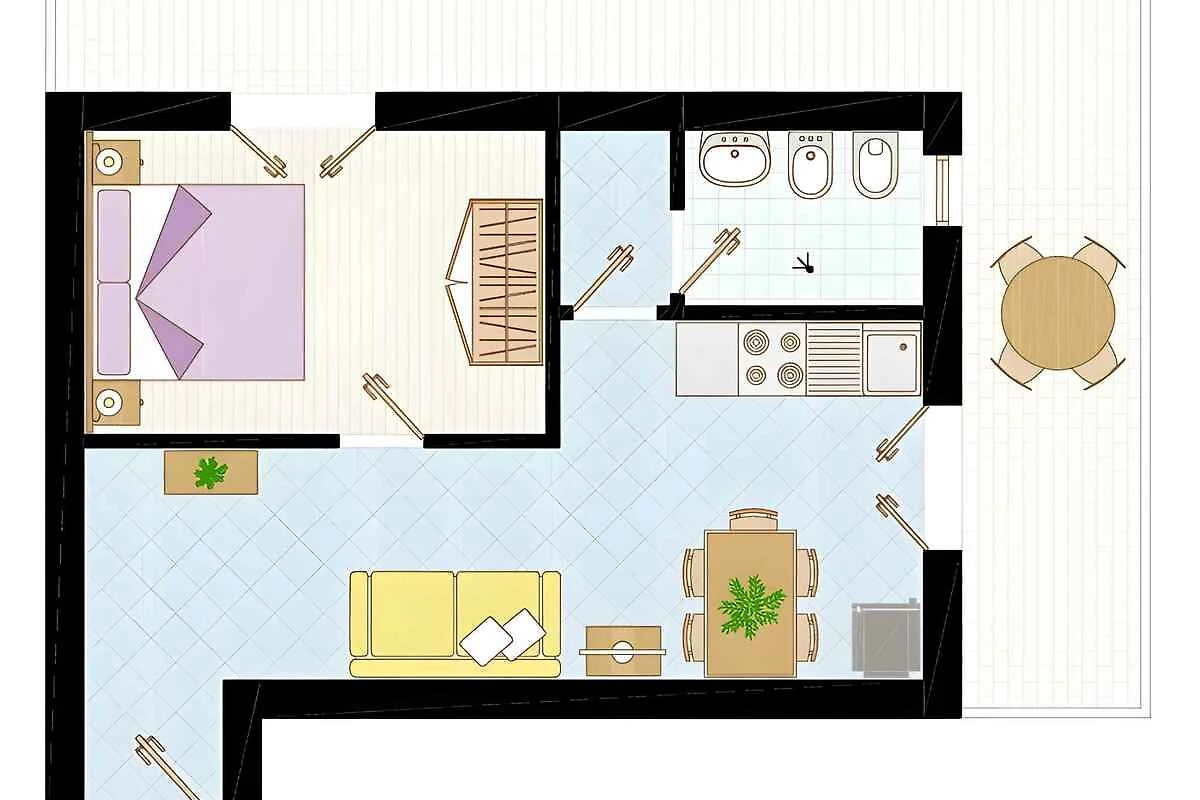 Ferienwohnung, 1 Etage, 2 Zimmer (davon 1 Schlafzimmer), 45 qm, insgesamt 5 Betten (davon 2 Zusatzbetten).