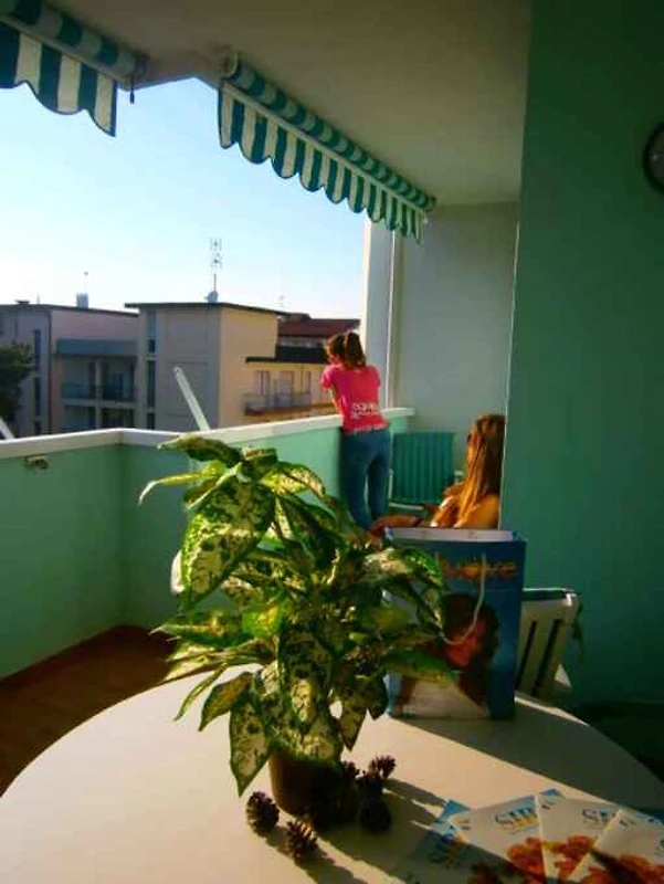 Bibione, Ortsteil Spiaggia. Die Ferienwohnung befindet sich auf einem geschlossenen Gartengrundstück mit Wiese, Blumen und Bäumen, von einem Zaun und einer Hecke begrenzt. Der Vermieter wohnt nicht im Haus oder auf dem Grundstück. Die Zufahrt erfolgt über eine Nebenstrasse (asphaltiert). Parkplatz (für 1 Pkw) auf dem Grundstück.
