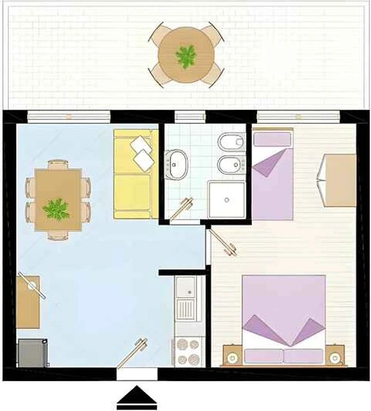 Bibione, Ortsteil Spiaggia. Die Ferienwohnung befindet sich in einer Residenz. Parkplatz (für 1 Pkw) auf dem Grundstück.