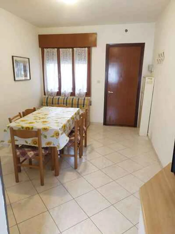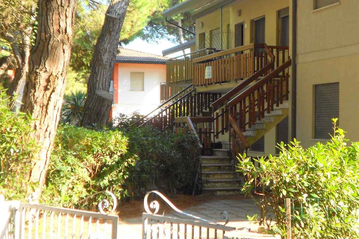 Rosolina Mare. Die Ferienwohnung befindet sich auf einem geschlossenen Gartengrundstück mit Sträuchern und Bäumen, von einem Zaun begrenzt. Der Vermieter wohnt nicht im Haus oder auf dem Grundstück. Die Zufahrt erfolgt über eine Nebenstrasse (asphaltiert). Parkplatz (für 2 Pkws) auf dem Grundstück.