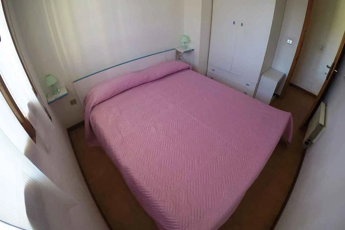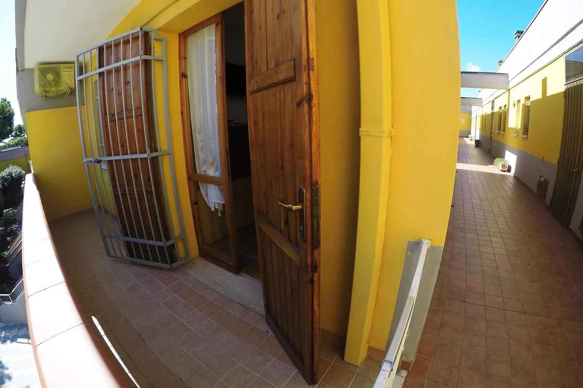 Rosolina Mare. Die Ferienwohnung befindet sich in einer Residenz. Apartment in Residenz mit Pool mit Blick auf den Pool. Die Zufahrt erfolgt direkt von der Hauptstrasse (asphaltiert). Parkplatz auf dem Grundstück.