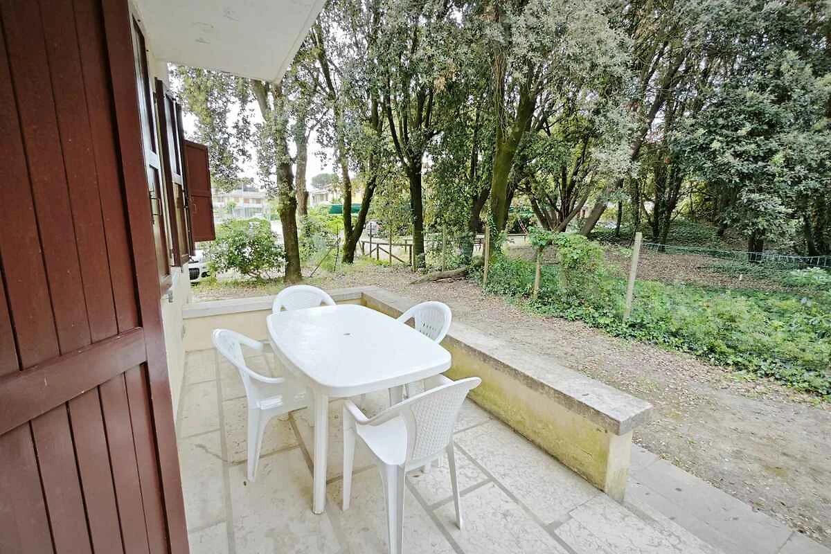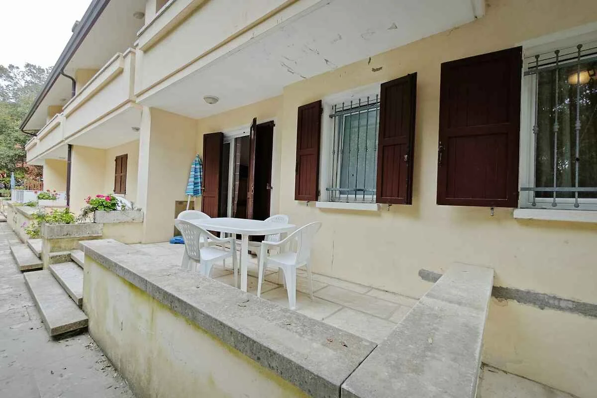 Rosolina Mare. Die Ferienwohnung befindet sich auf einem 1000 qm grossen, geschlossenen Waldgrundstück mit Wiese, Blumen und Bäumen, von einem Zaun und einer Hecke begrenzt. Der Vermieter wohnt nicht im Haus oder auf dem Grundstück. Die Zufahrt erfolgt über eine Nebenstrasse. Parkplatz in Carport.