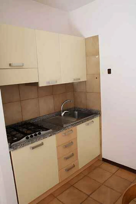 Der Eingang in Ihre Ferienwohnung führt direkt in die Wohnküche. Wohnzimmer mit 1 Zusatzbett auf Couch/Sofa, TV, Essecke (6 Plätze) und Zugang zur Terrasse (gemeinsam mit Aufenthaltsraum). Schlafzimmer mit 2 Einzelbetten. Schlafzimmer mit 1 Doppelbett. Kochecke (Durchgangszimmer) mit TV, Essecke (6 Plätze), Gasherd (4 Flammen), Kühlschrank (Eisfach), Waschmaschine und Zugang zum Balkon. Bad (nicht beheizbar) mit Dusche, WC und Bidet.