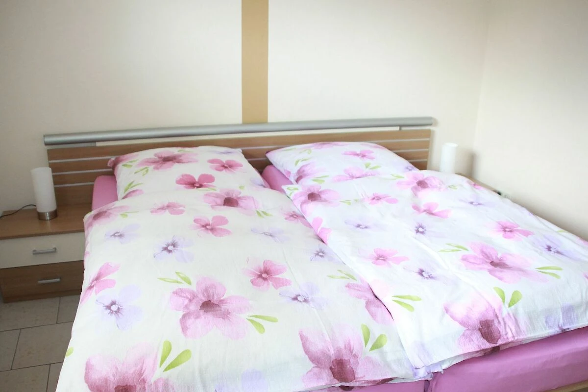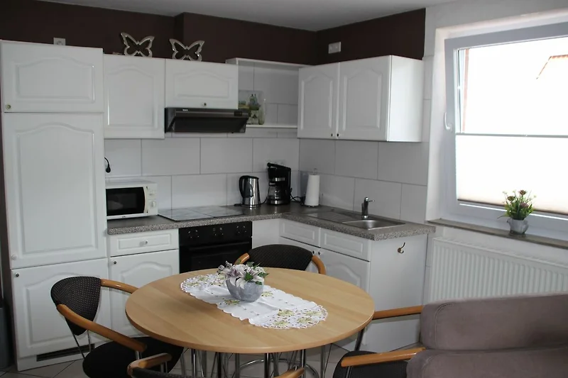 Ferienwohnung ist ruhig gelegen in der Kirchstrasse, Bäcker und Lebensmittelmarkt sind fussläufig erreichbar.