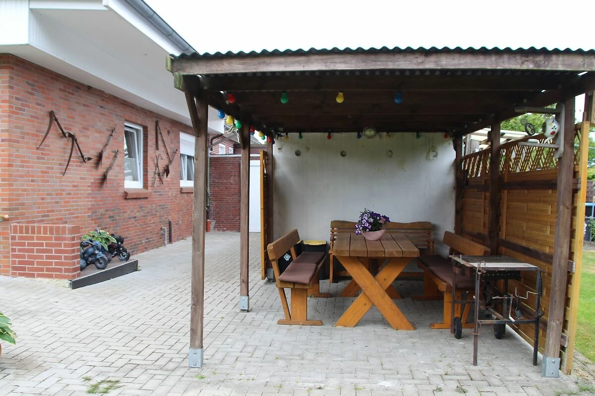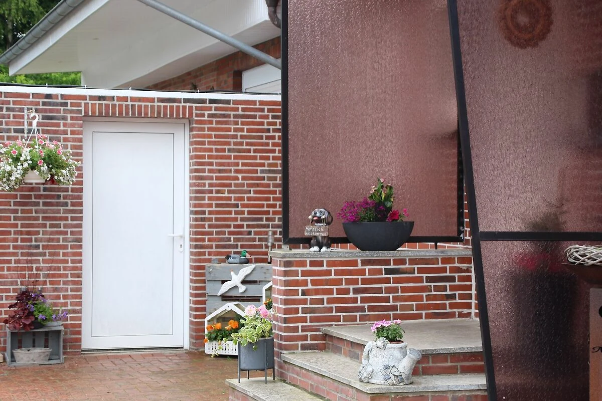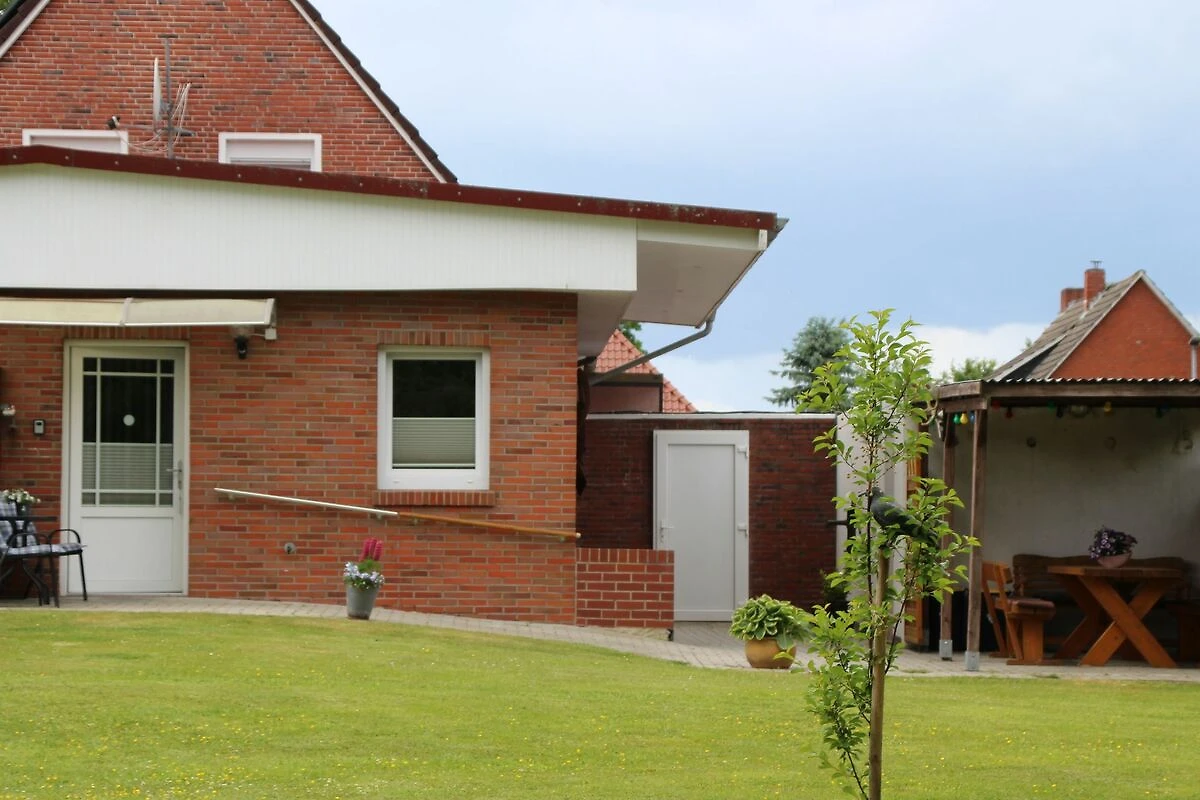 Gemütliche Ferienwohnung in Ostrhauderfehn, Erdgeschoss, Wohnraum mit Einbauküche und Essecke, Sitzecke, Mikrowelle, SAT-TV, Radiorecorder, 1 Doppelzimmer, 1 Zweibettzimmer, Bad mit Dusche/Wanne/WC, Terrasse mit Gartenmöbeln, sehr schöner Garten, Grillmöglichkeit, Parkplatz am Hause, Bushaltestelle in nächster Nähe.