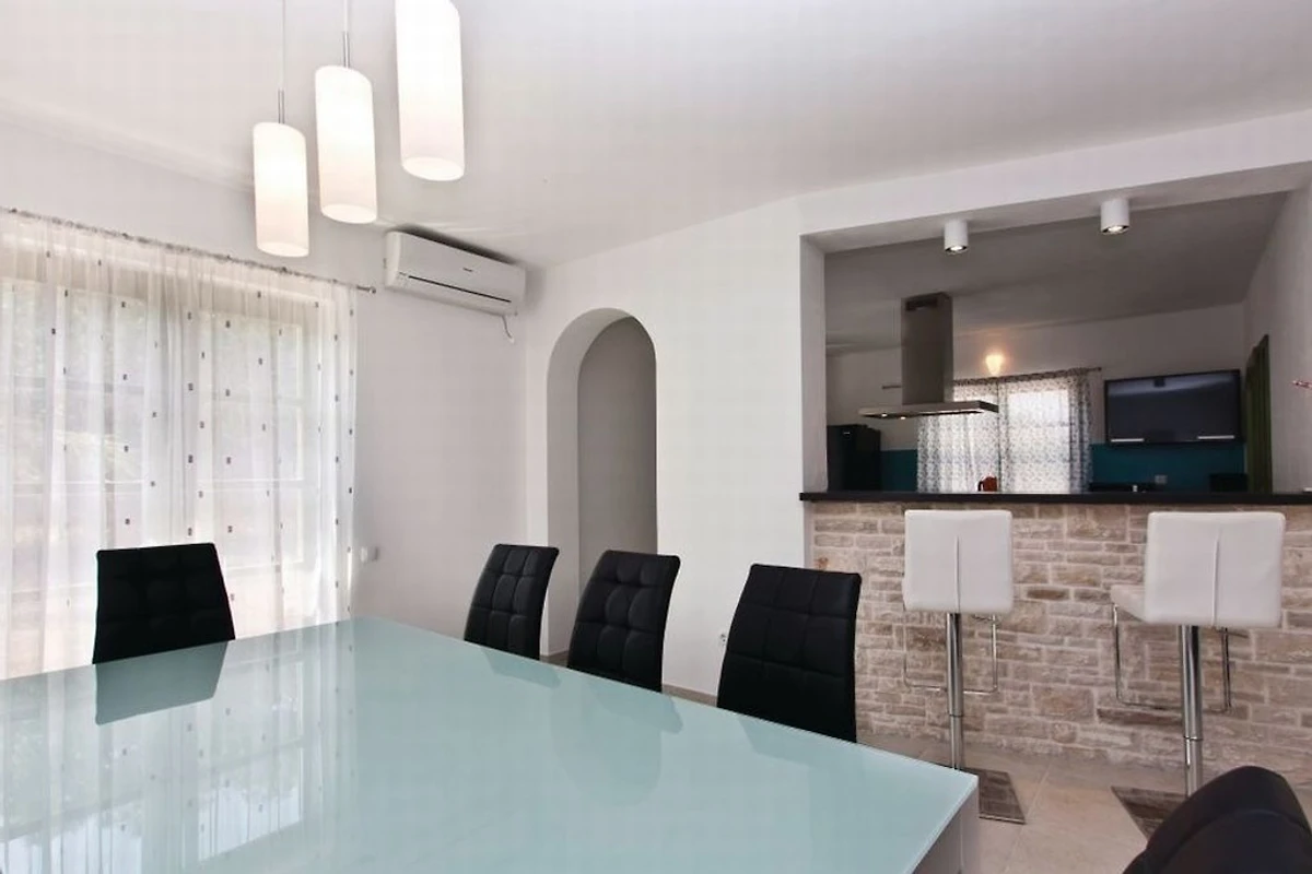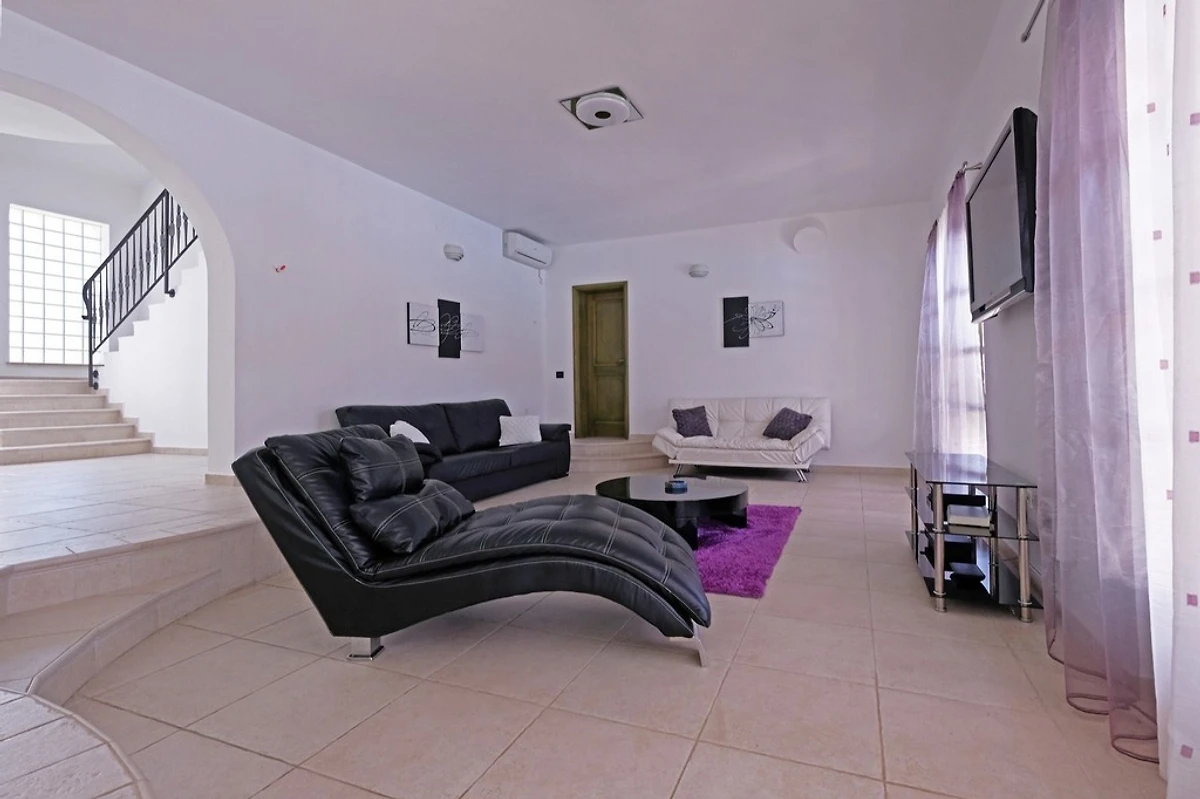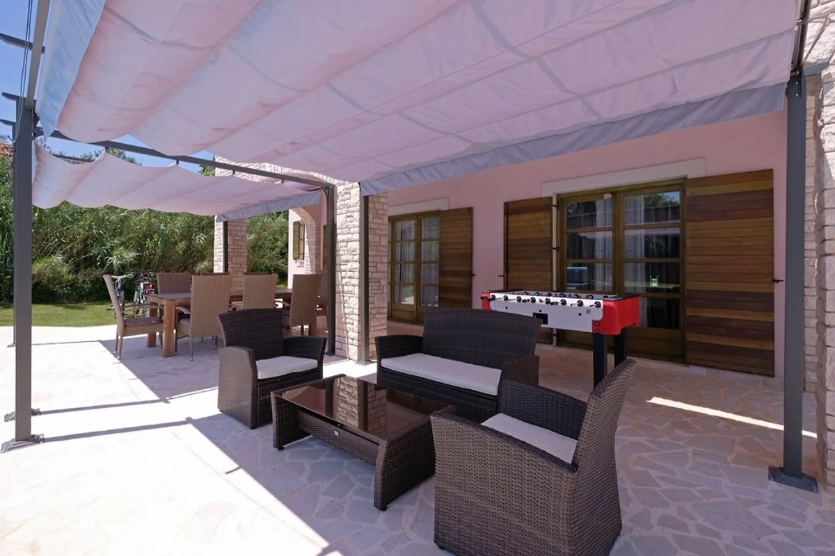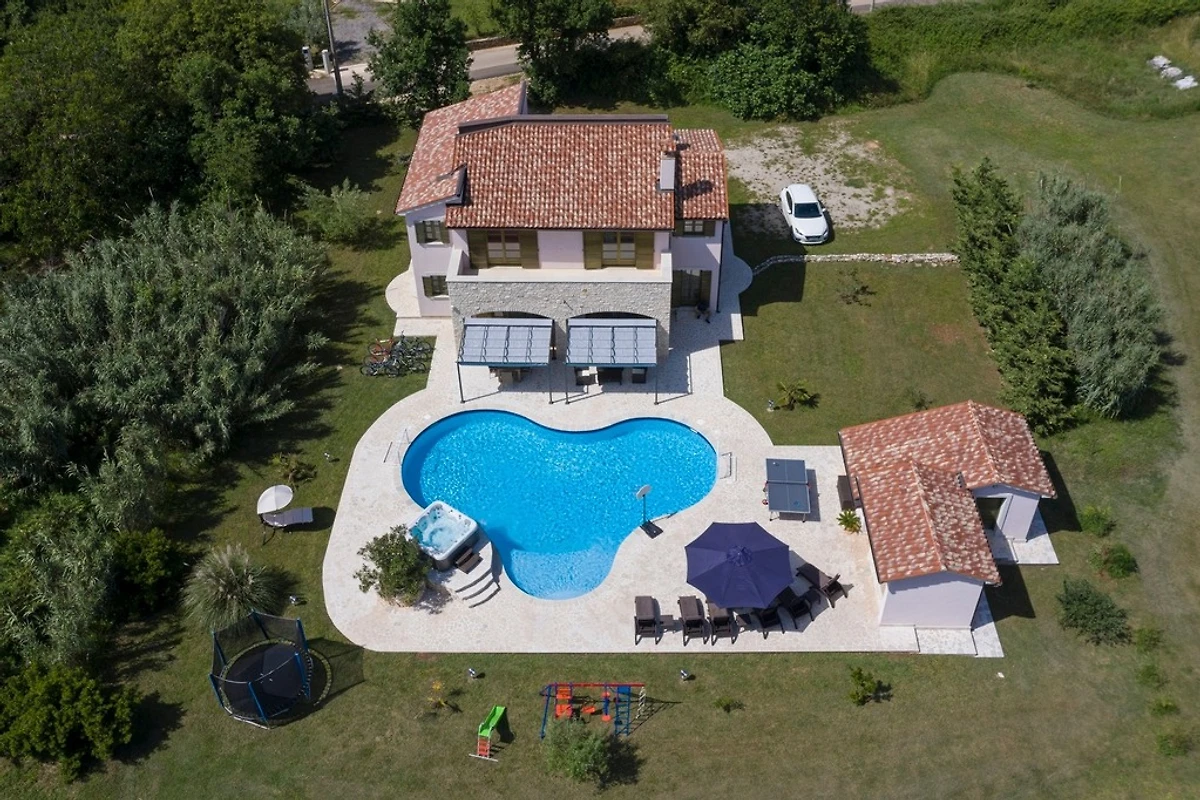 Villa Venka ist ein komfortables zweistöckiges Haus mit vier Parkplätzen und einem großen Pool auf dem Grundstück. Im Erdgeschoss befinden sich ein schönes Wohnzimmer mit Pool- und Gartenzugang, eine voll ausgestattete Küche mit Essbereich, ein Doppelzimmer mit Dusche, ein separates WC und ein Abstellraum sowie eine große Lobby. Im Erdgeschoss befinden sich vier geräumige Doppelzimmer, zwei Badezimmer mit Badewanne, von denen eines massiert ist. Zwei Schlafzimmer haben Zugang zu einem großen Balkon. Das Haus ist mit 6 Klimaanlagen ausgestattet. In einem Garten, der sich über 6ooo Quadratmeter erstreckt, befindet sich ein Grillhaus im Freien. Das Äußere ist mit hochwertigen Möbeln eingerichtet, mit sechs Liegestühlen und einem Whirlpool für 5 Personen. Zahlreiche Unterhaltungsmöglichkeiten wie Tischfußball, Tischtennis, ein Kinderspielplatz mit Trampolin, Fußballplätze, Badminton- und Volleyballnetz sowie ein Basketballkorb befinden sich auf dem Spielfeld. Sechs Fahrräder stehen den Gästen zur Verfügung.