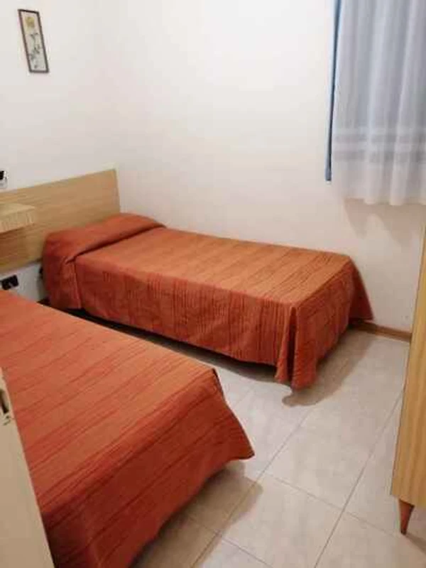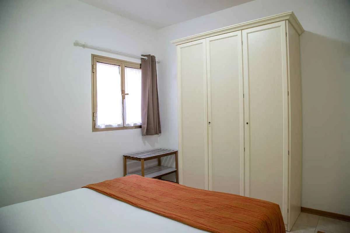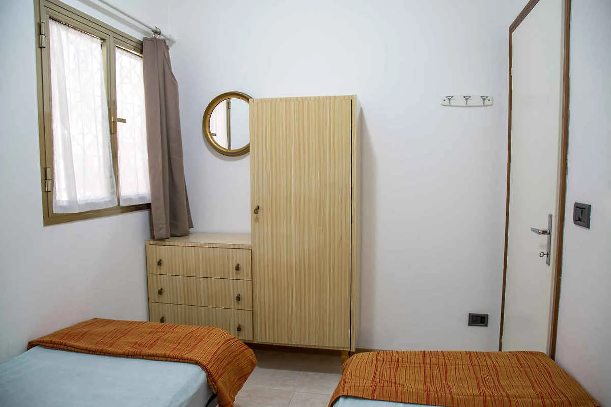 Der Eingang in Ihren Bungalow befindet sich im Erdgeschoss, ist überdacht und ebenerdig und führt direkt in das Wohn/Schlafzimmer. Wohn/Schlafzimmer (Durchgangszimmer) mit 1 Zusatzbett auf Klappbett, TV, (6 Plätze) und Zugang zur Terrasse (Gartenmöbel, 1 Tisch, 4 Stühle). Schlafzimmer mit 2 Einzelbetten. Schlafzimmer mit 1 Doppelbett und 1 Gitterbett. Kochnische im Wohn/Schlafzimmer (Durchgangszimmer) mit TV, (6 Plätze), Gasherd (4 Flammen) und Kühlschrank. Bad mit Dusche, WC und Bidet.