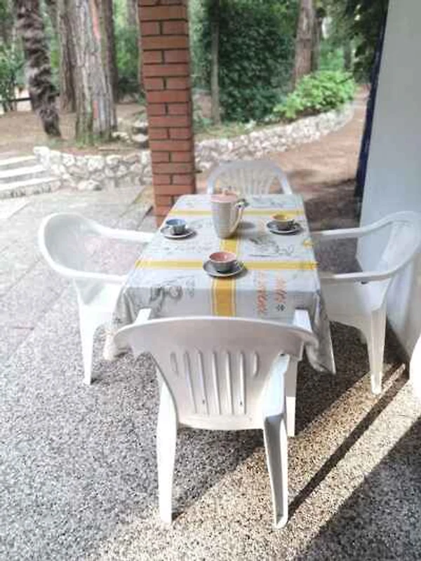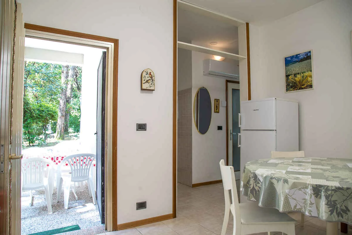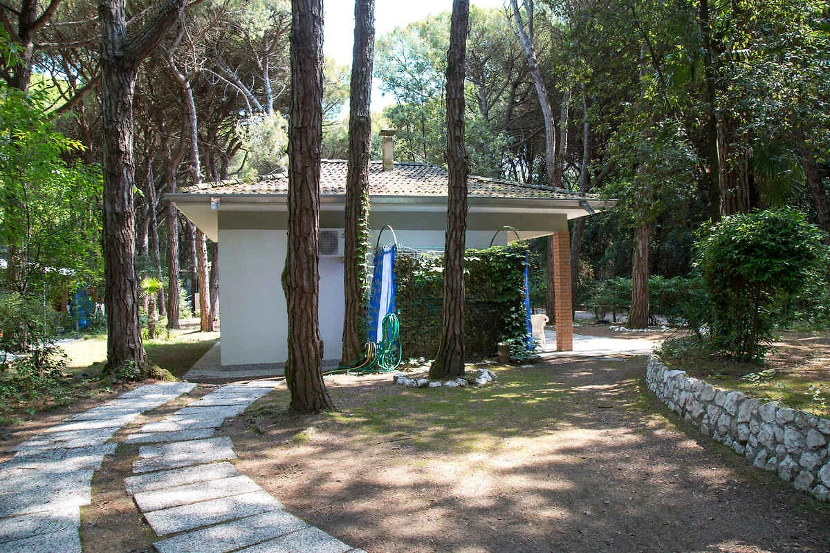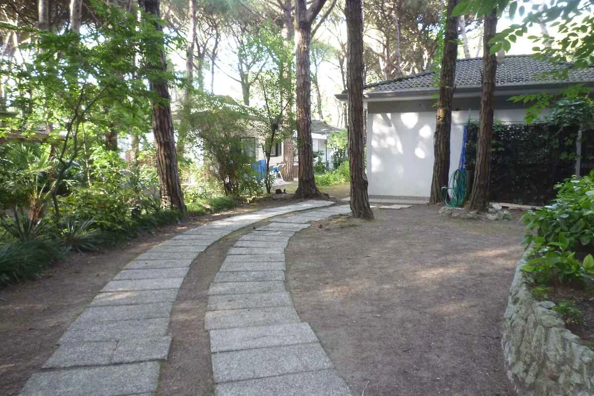 Eraclea Mare. Der Bungalow befindet sich auf einem offenen Gartengrundstück mit Bäumen. Der Vermieter wohnt nicht im Haus oder auf dem Grundstück. Die Zufahrt erfolgt über eine Nebenstrasse (Geröll oder Schotter). Parkplatz (für 2 Pkws) auf dem Grundstück.