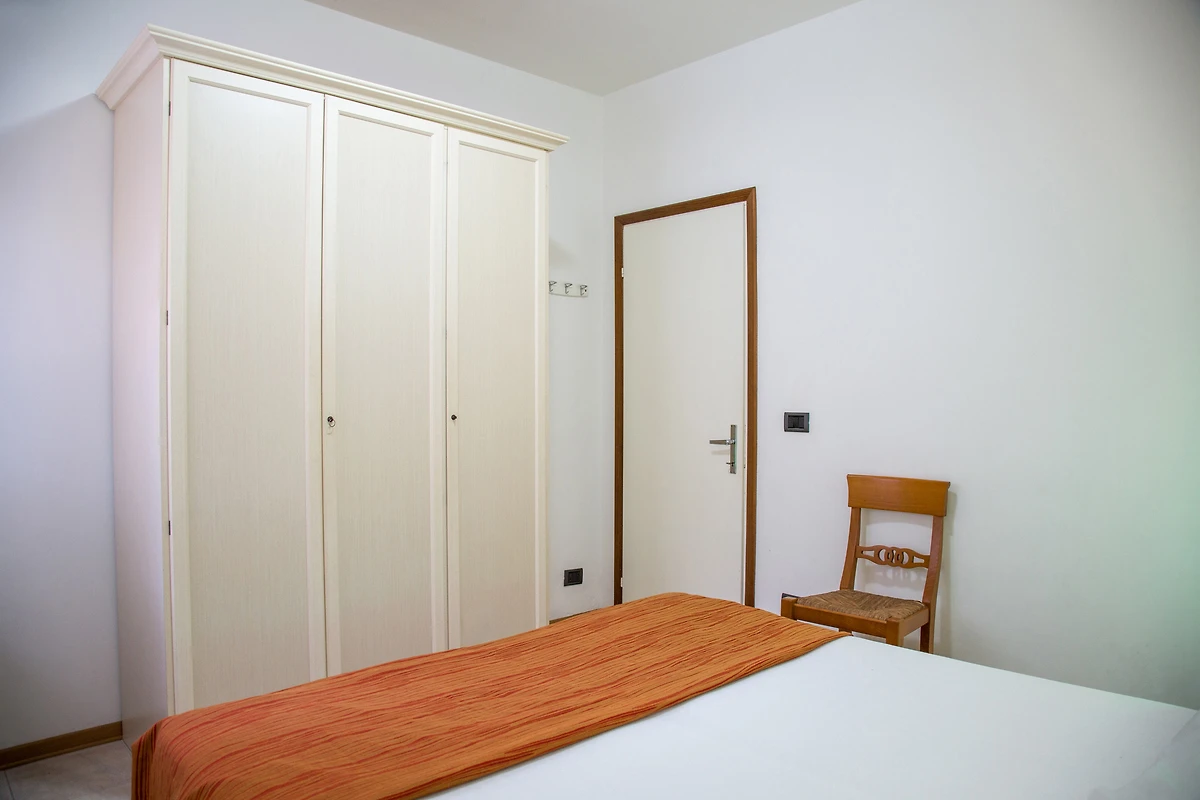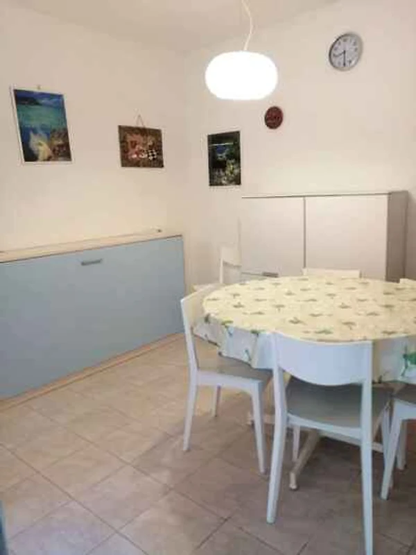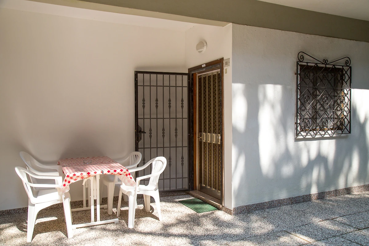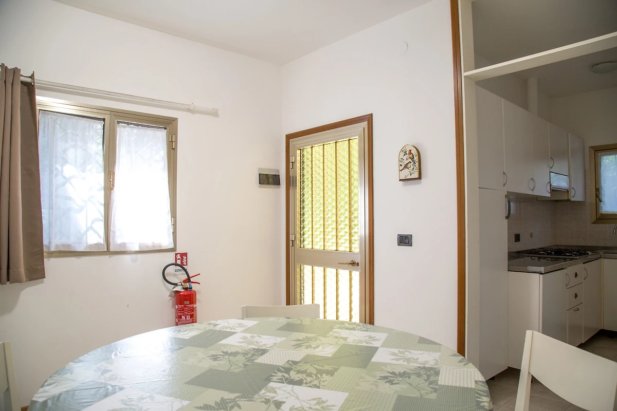Eraclea Mare. Der Bungalow befindet sich auf einem offenen Gartengrundstück mit Bäumen. Der Vermieter wohnt nicht im Haus oder auf dem Grundstück. Die Zufahrt erfolgt über eine Nebenstrasse (Geröll oder Schotter). Parkplatz (für 2 Pkws) auf dem Grundstück.