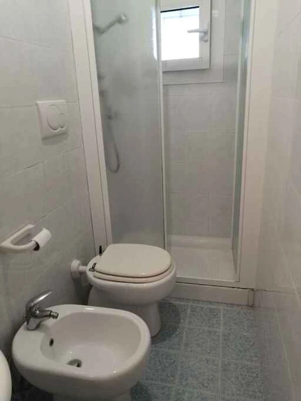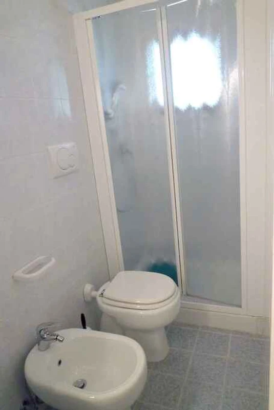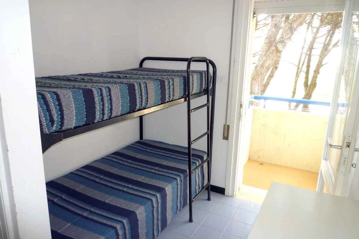 1. Etage: Schlafzimmer (Durchgangszimmer) mit 1 Etagenbett, Zugang zum Balkon und La camera non ha una porta per chiuderla. Ha una sua porta finestra per accedere ad un balcone. Schlafzimmer mit 1 Doppelbett und Zugang zum Balkon. Bad mit Dusche, WC, Bidet und Fenster.