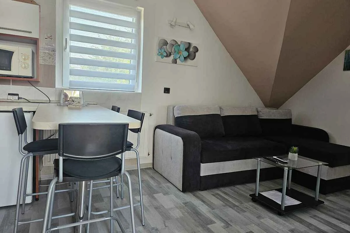 Die Ferienwohnung befindet sich in einem Apartementhaus, wurde im Jahr 2020 renoviert und ist modern eingerichtet. Das Grundstück liegt im Ortszentrum, nahe der Altstadt. Auch wegen des Ausblicks vom Grundstück auf den See und der ruhigen und sonnigen Lage ist das Domizil beliebt. Zur alleinigen Nutzung stehen zur Verfügung: Sonnenschirm, Gartenmöbel und Hof. Die OTP SZÉP-Karte wird vor Ort akzeptiert.