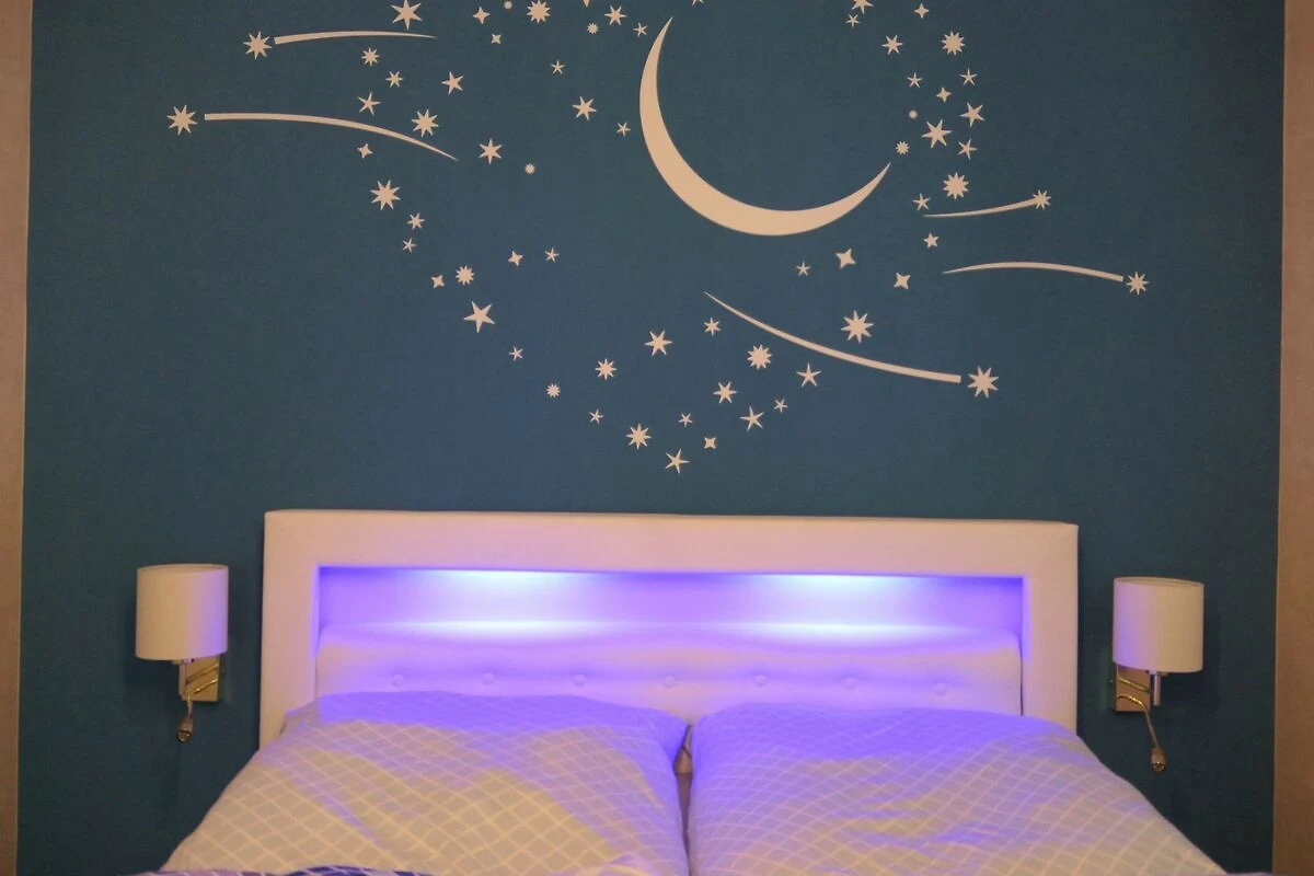 Kleiderschrank und grossem SAT-TV (43 Zoll), romantische Beleuchtung