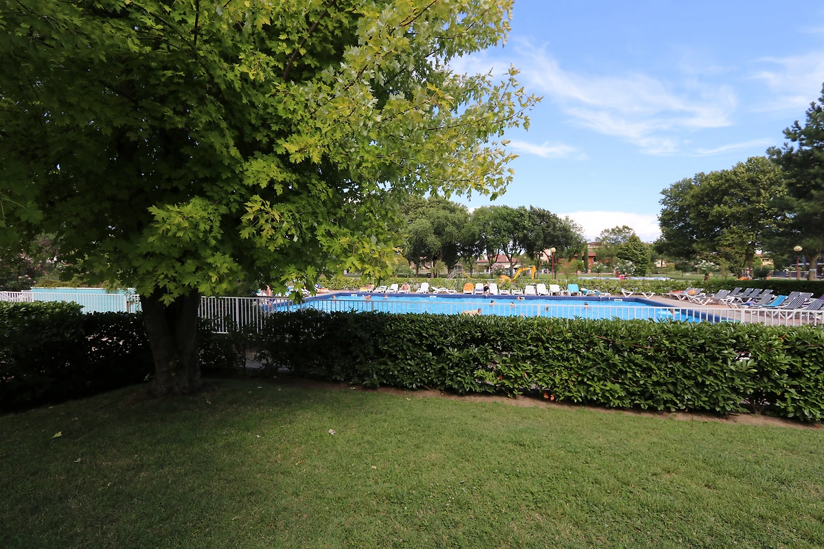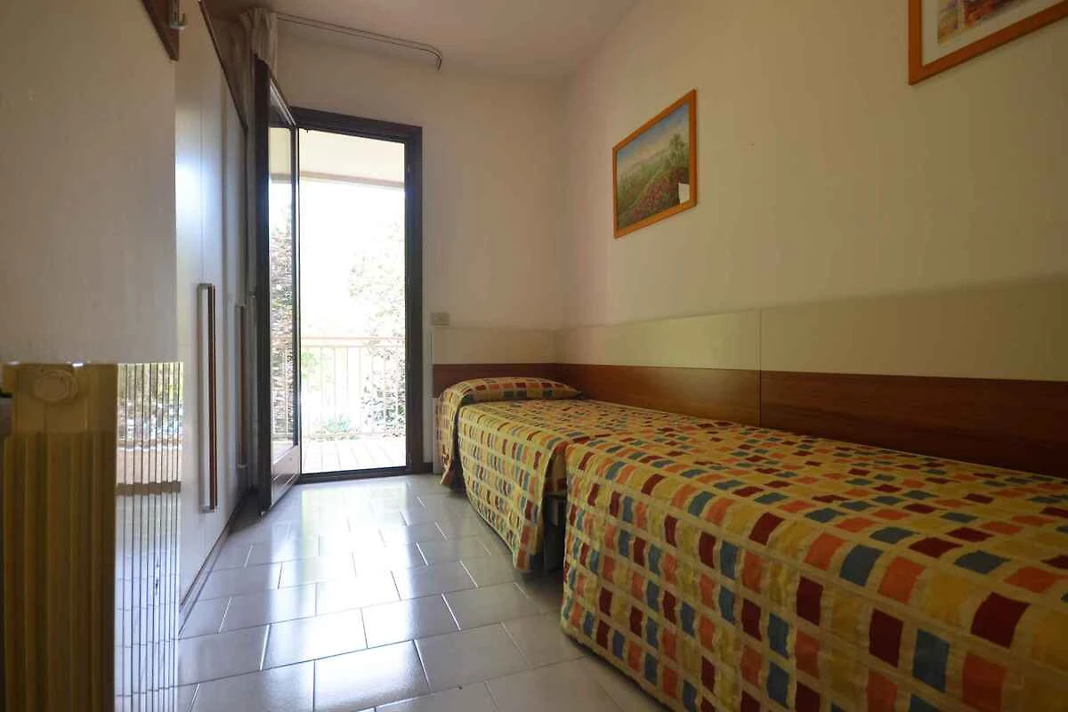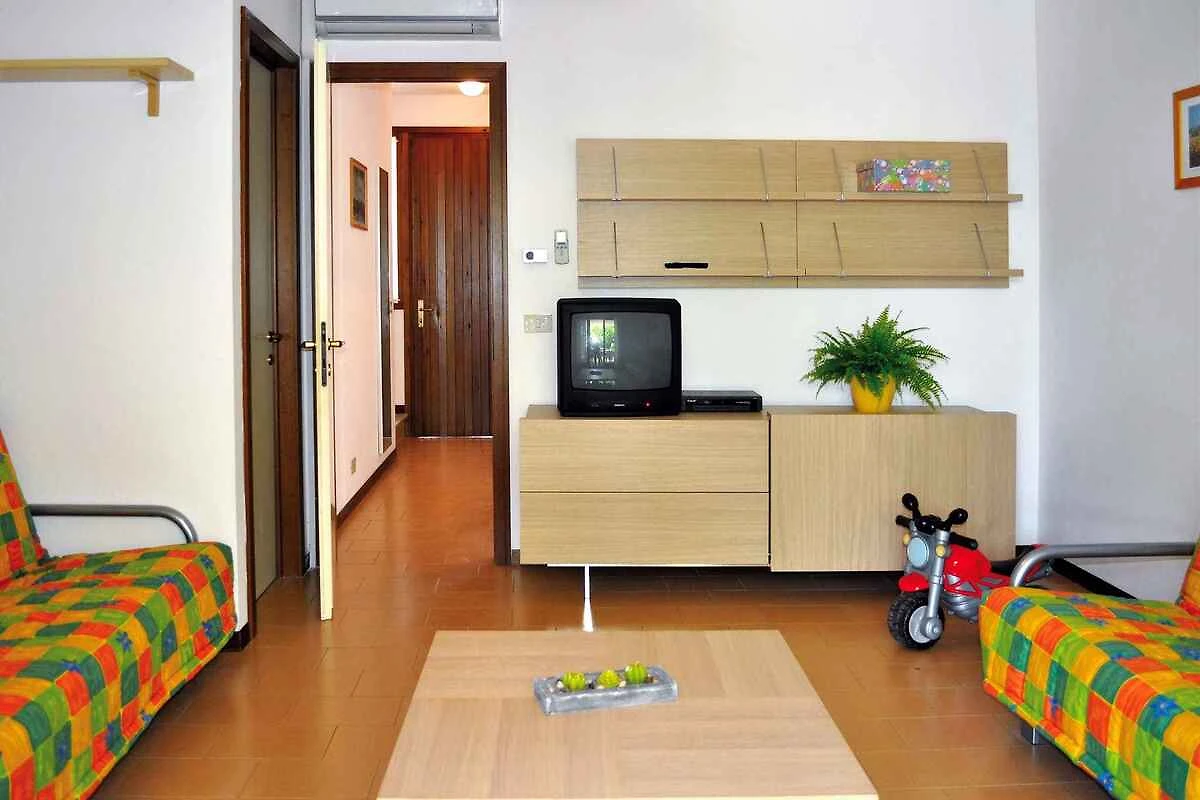 Bibione, Ortsteil Spiaggia. Die Ferienwohnung befindet sich in einer Ferienanlage, auf einem Gartengrundstück. Parkplatz (für 1 Pkw) auf dem Grundstück.