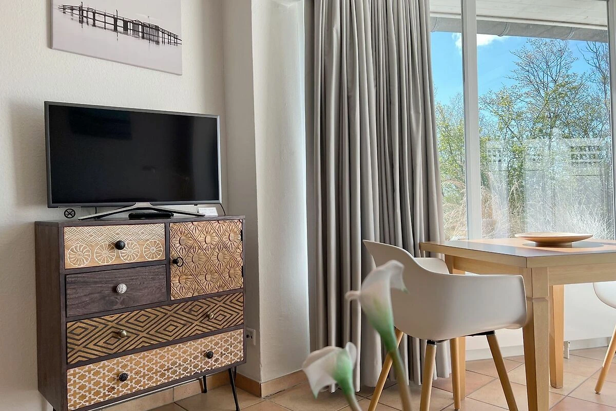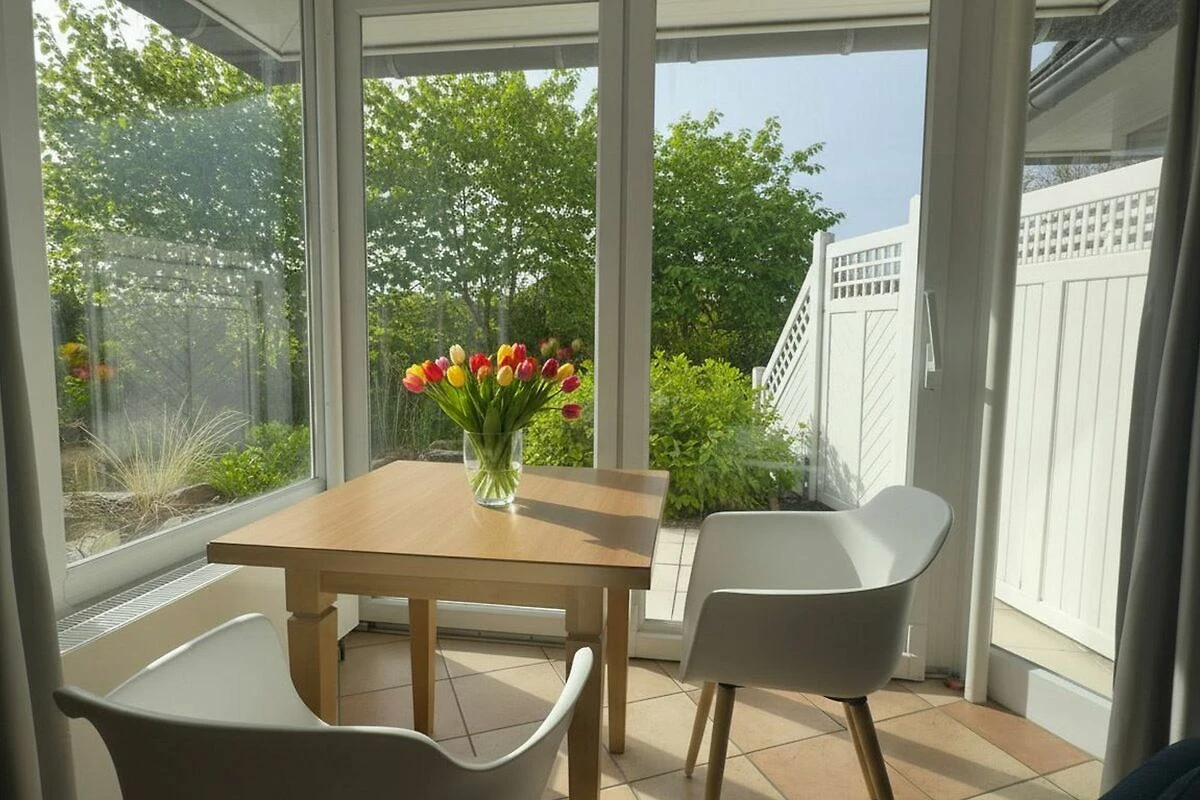 Die Wohnung 5, im Haus Luna I, liegt im Erdgeschoss und ist für 1 - 2 Personen ein herrliches Urlaubsquartier. Im Eingangsbereich finden Sie eine Garderobe und 1 Duschbad mit WC und Waschbecken. Der gemütliche Wohn-Essbereich verfügt über eine offene, umfangreich ausgestattete Küche, in der auch das Kochen im Urlaub Spass macht. Der Essbereich befindet sich im hellen, vorgelagerten Wintergarten, wo Sie einen direkter Zugang zur Terrasse mit Strandkorb und Gartenmöbeln haben. Hier lässt es sich wunderbar in guter Nordseeluft entspannen. Erholsamen Schlaf bekommen Sie im Schlafzimmer mit 2 Einzelbetten (90x200cm).