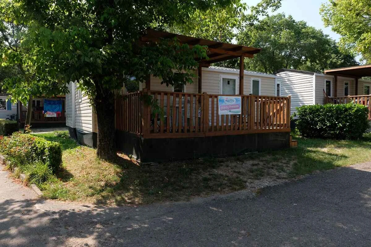 Das einzeln stehende Mobilehome ist zweckmässig eingerichtet. Das Grundstück befindet sich auf einem Campingplatz. Bei diesem Ferienobjekt handelt es sich um eine familienfreundliche Unterkunft. Zur Nutzung stehen zur Verfügung: Sonnenschirm, Sonnenliege, Kinderspielplatz, Grillmöglichkeit, Terrasse und Gartenmöbel.