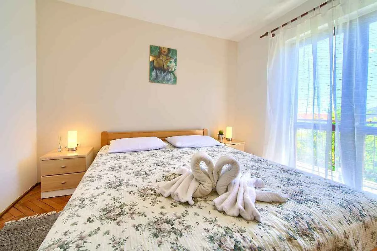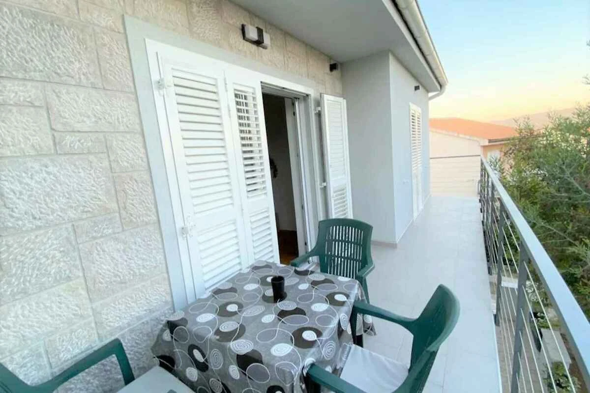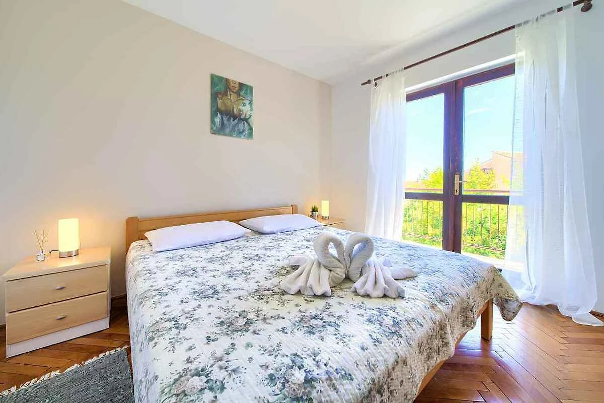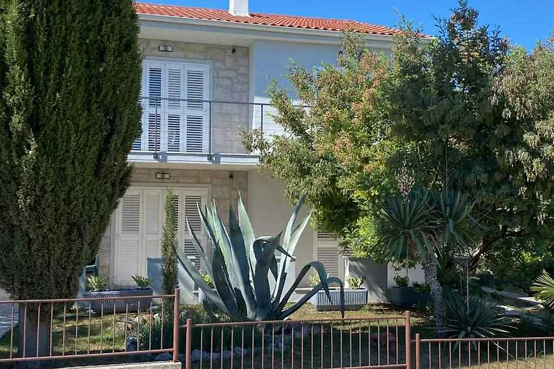 Krk. Die Ferienwohnung befindet sich auf einem geschlossenen Gartengrundstück, von einem Zaun begrenzt. Der Vermieter wohnt ständig im Haus, nutzt jedoch einen separaten Eingang. Parkplatz (für 1 Pkw).