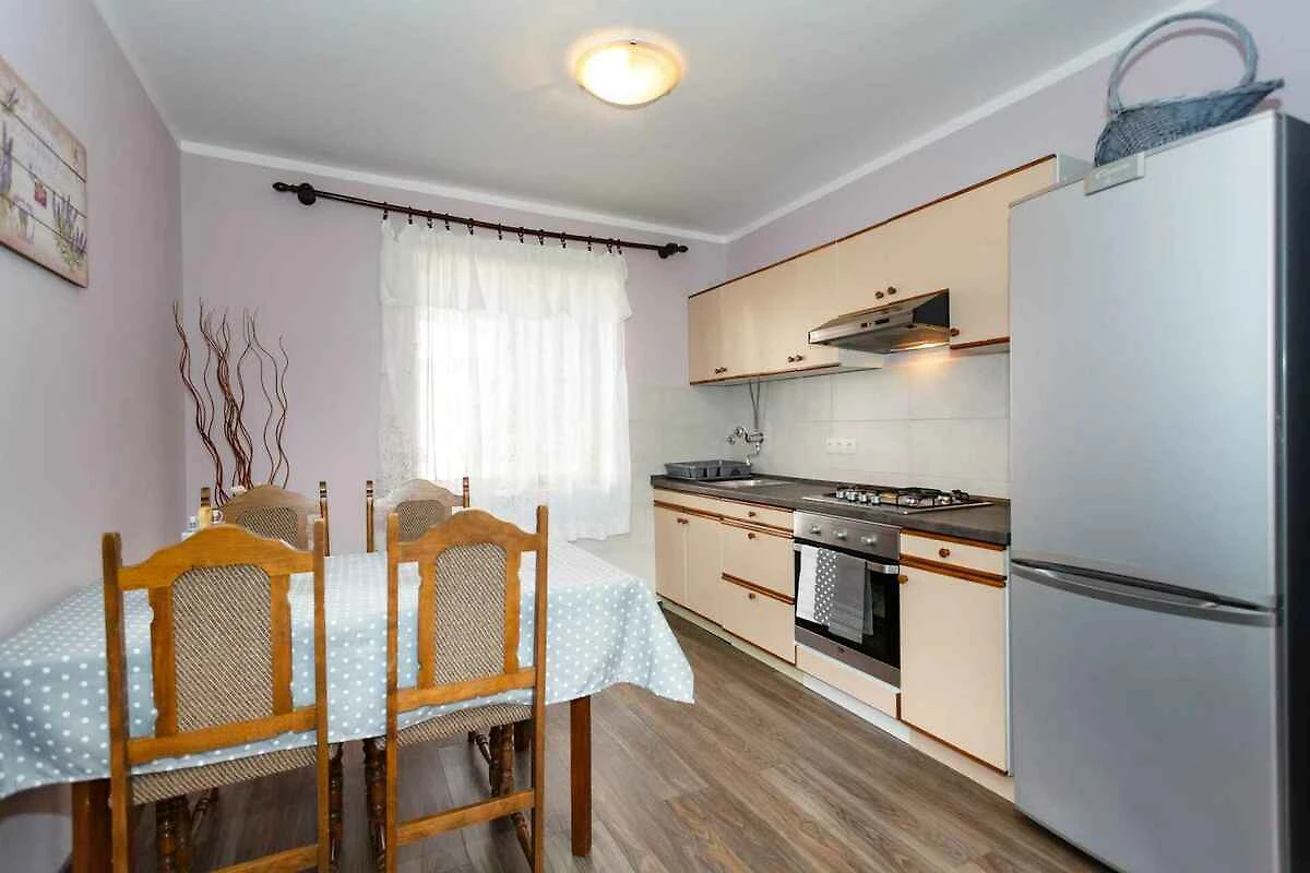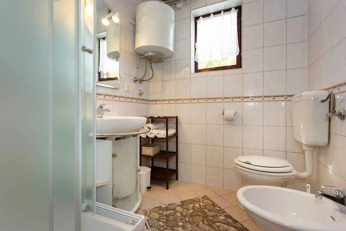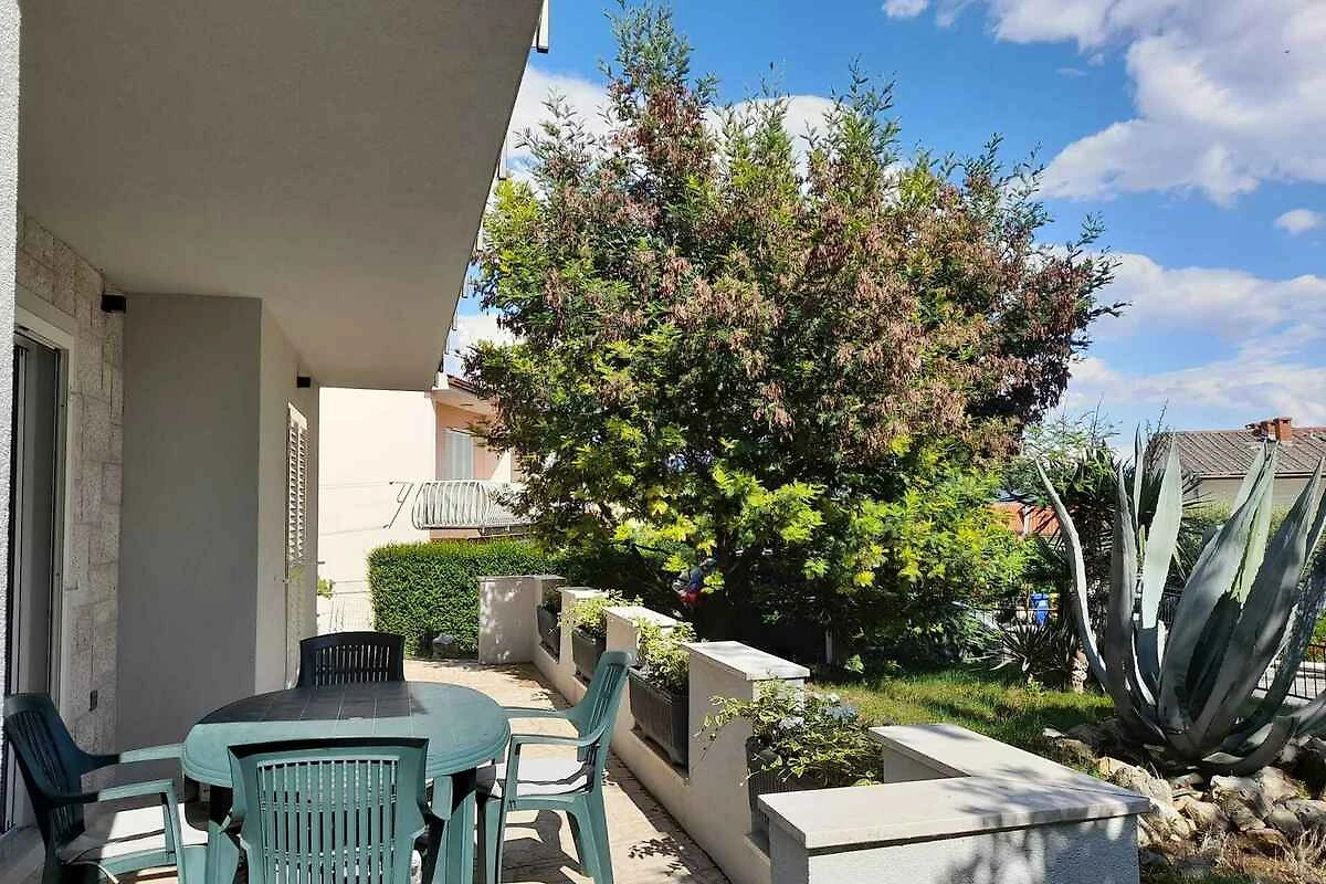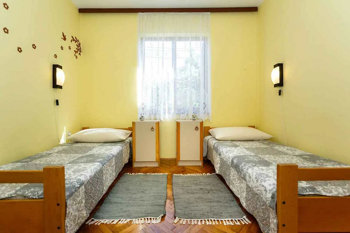 Krk. Die Ferienwohnung befindet sich auf einem geschlossenen Gartengrundstück, von einem Zaun begrenzt. Der Vermieter wohnt ständig im Haus. Parkplatz (für 1 Pkw) auf dem Grundstück.
