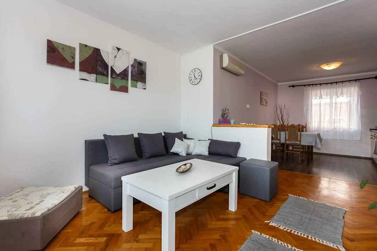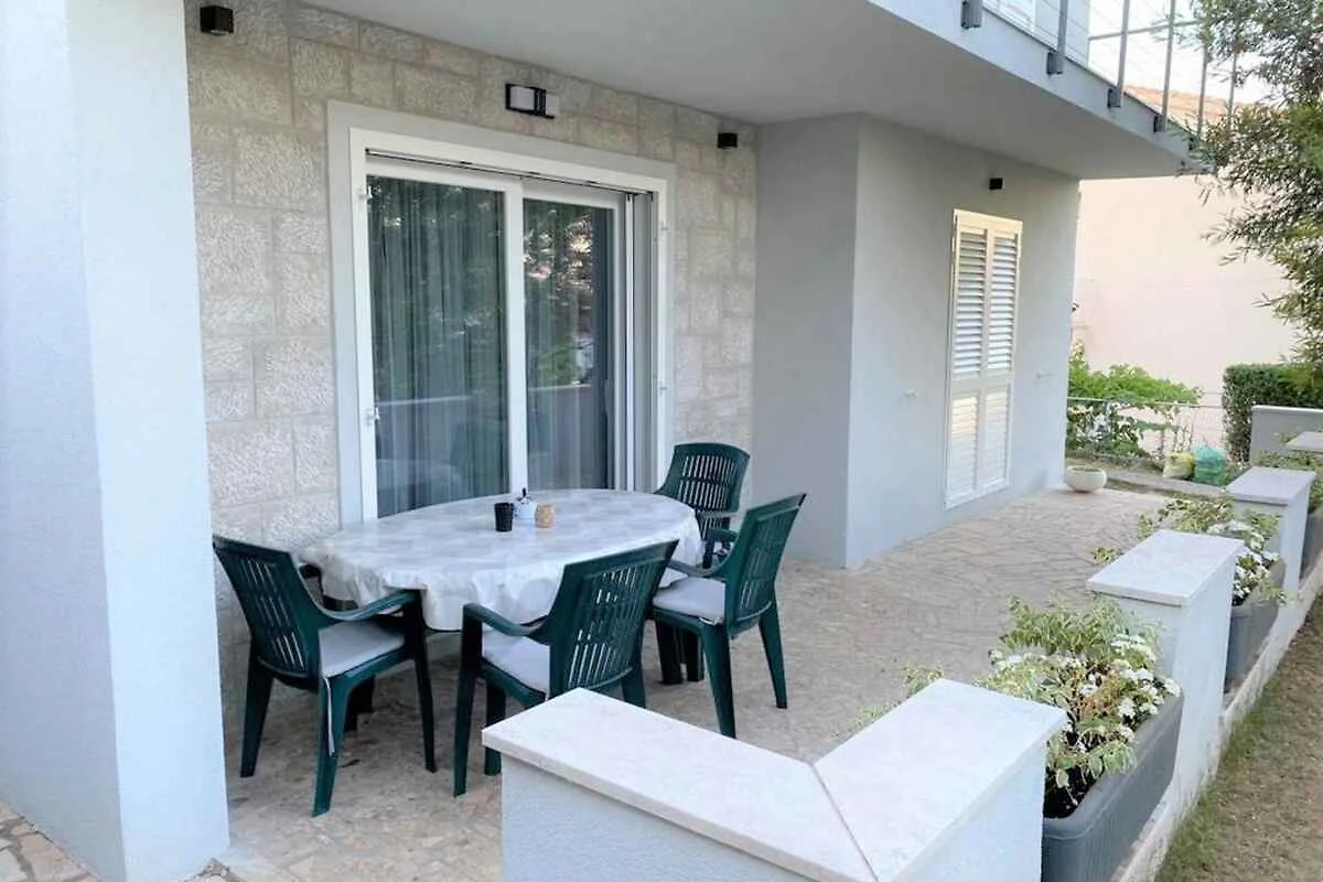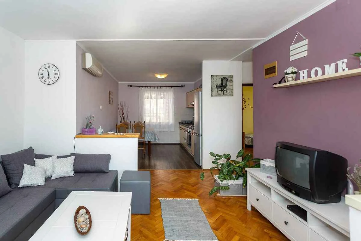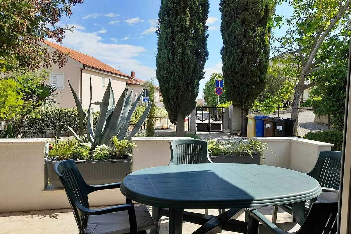 Krk. Die Ferienwohnung befindet sich auf einem geschlossenen Gartengrundstück, von einem Zaun begrenzt. Der Vermieter wohnt ständig im Haus. Parkplatz (für 1 Pkw) auf dem Grundstück.